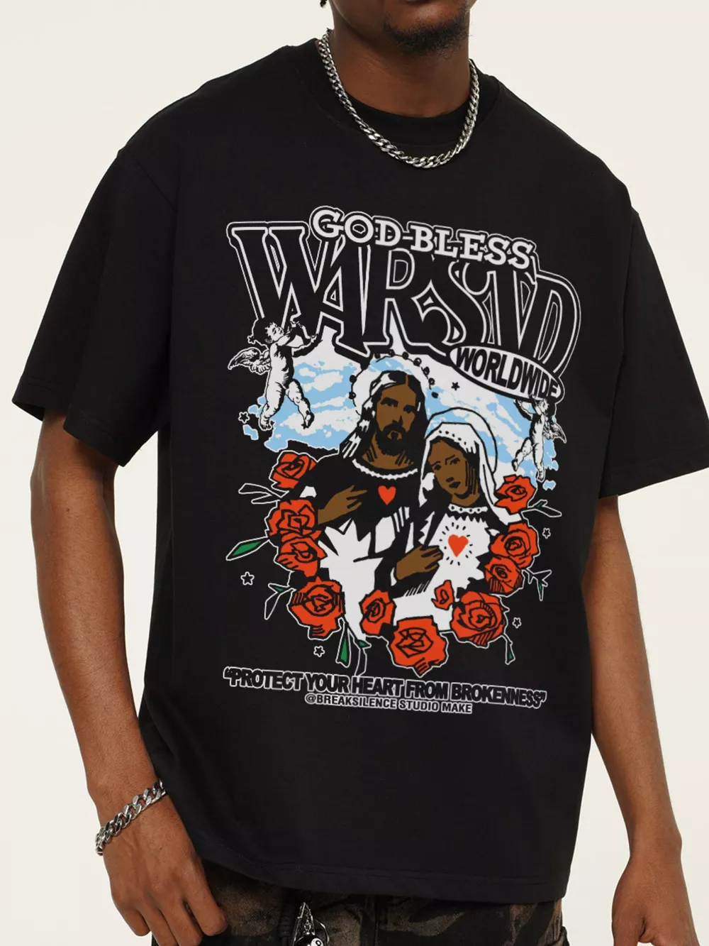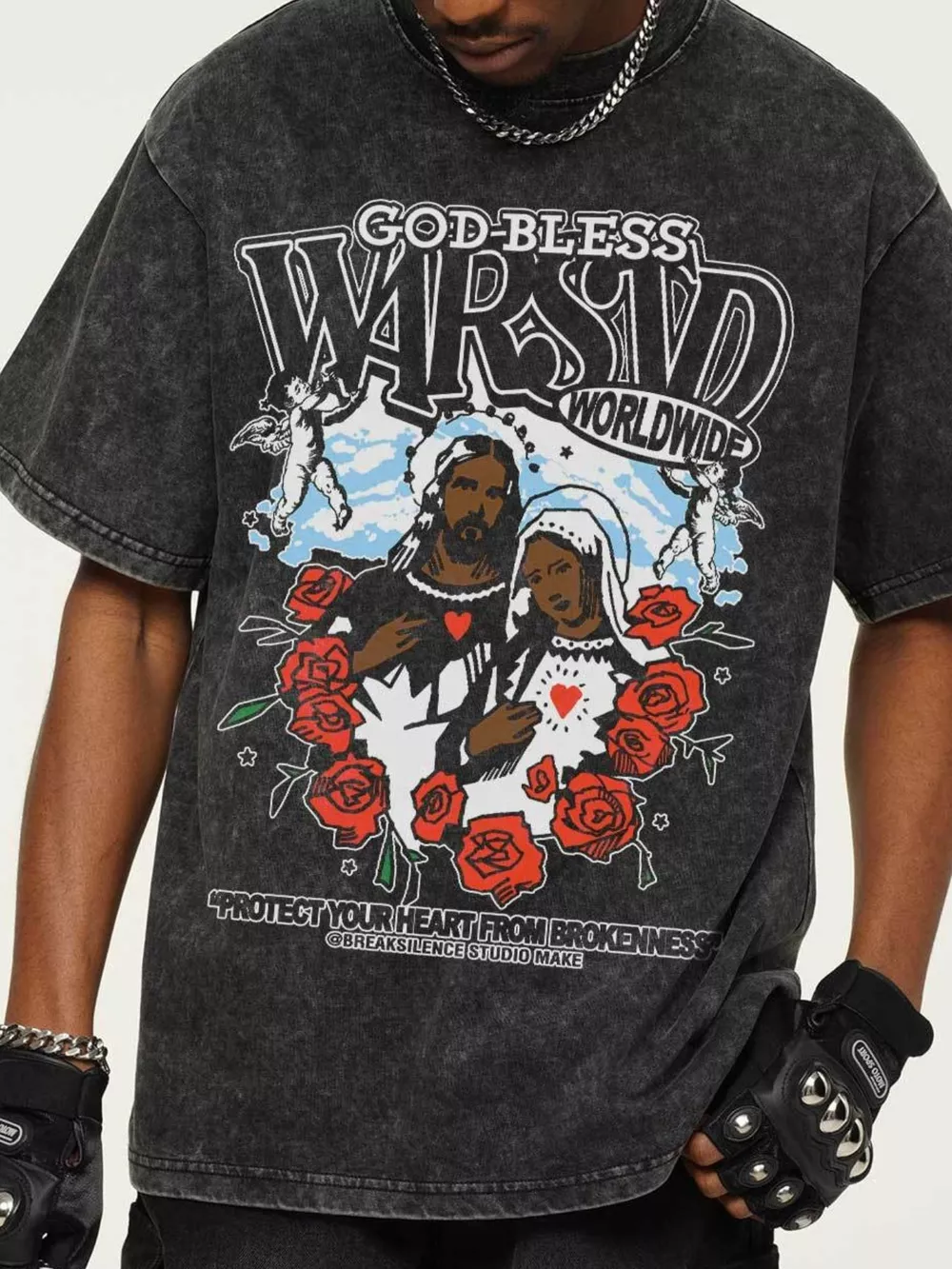 Men's God-Bless Graphic Print Vintage Wash T-Shirt