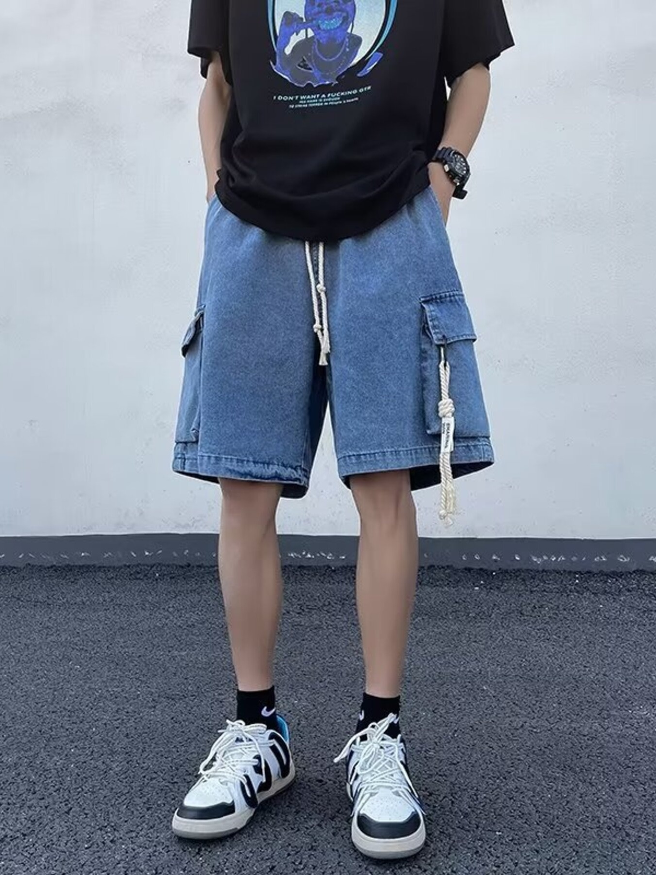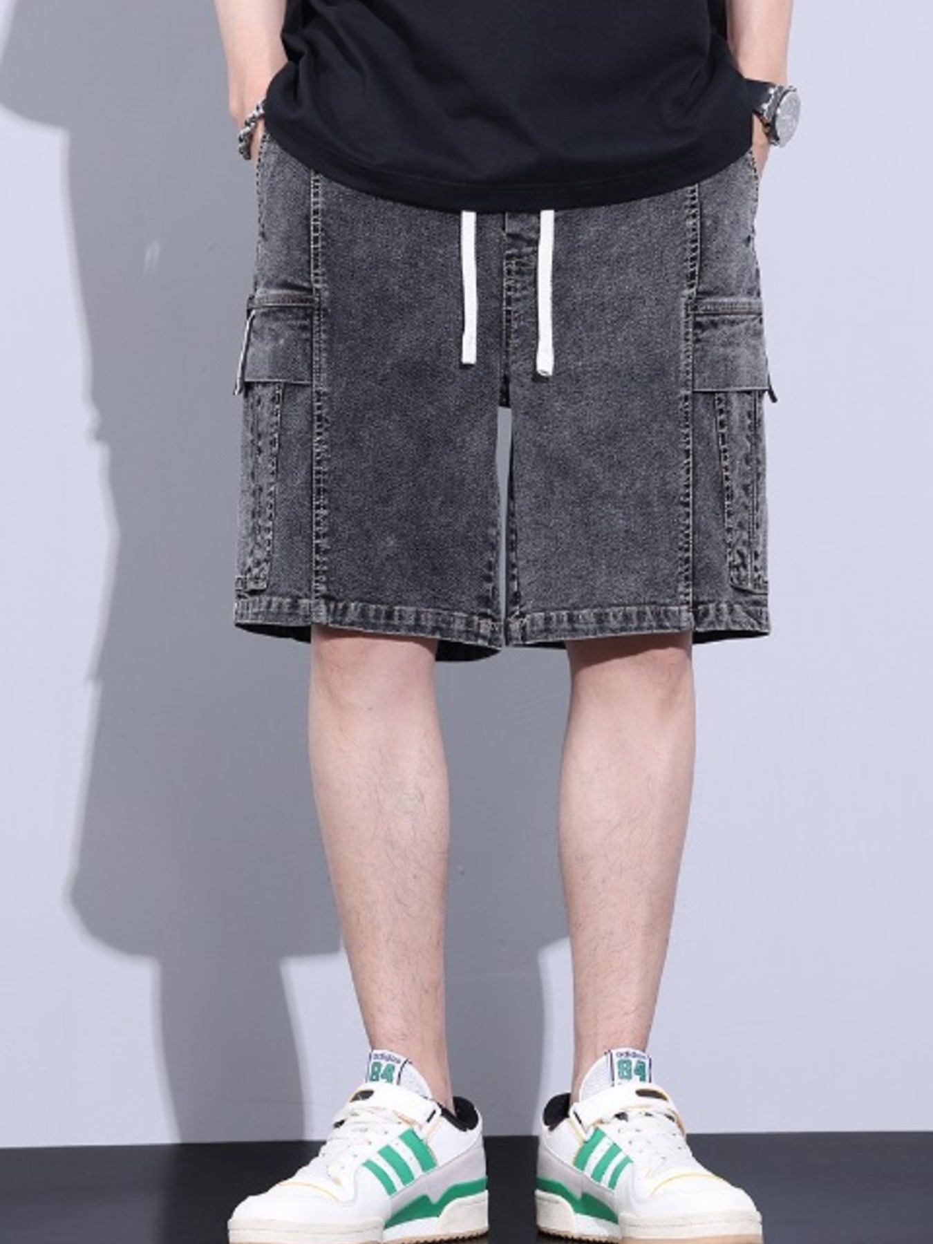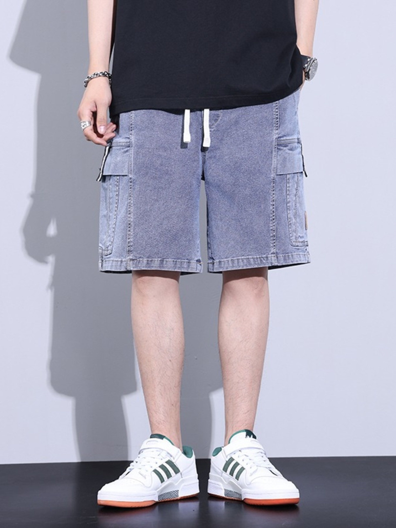 Men's Plus Size Vintage Wash Cargo Demin Shorts