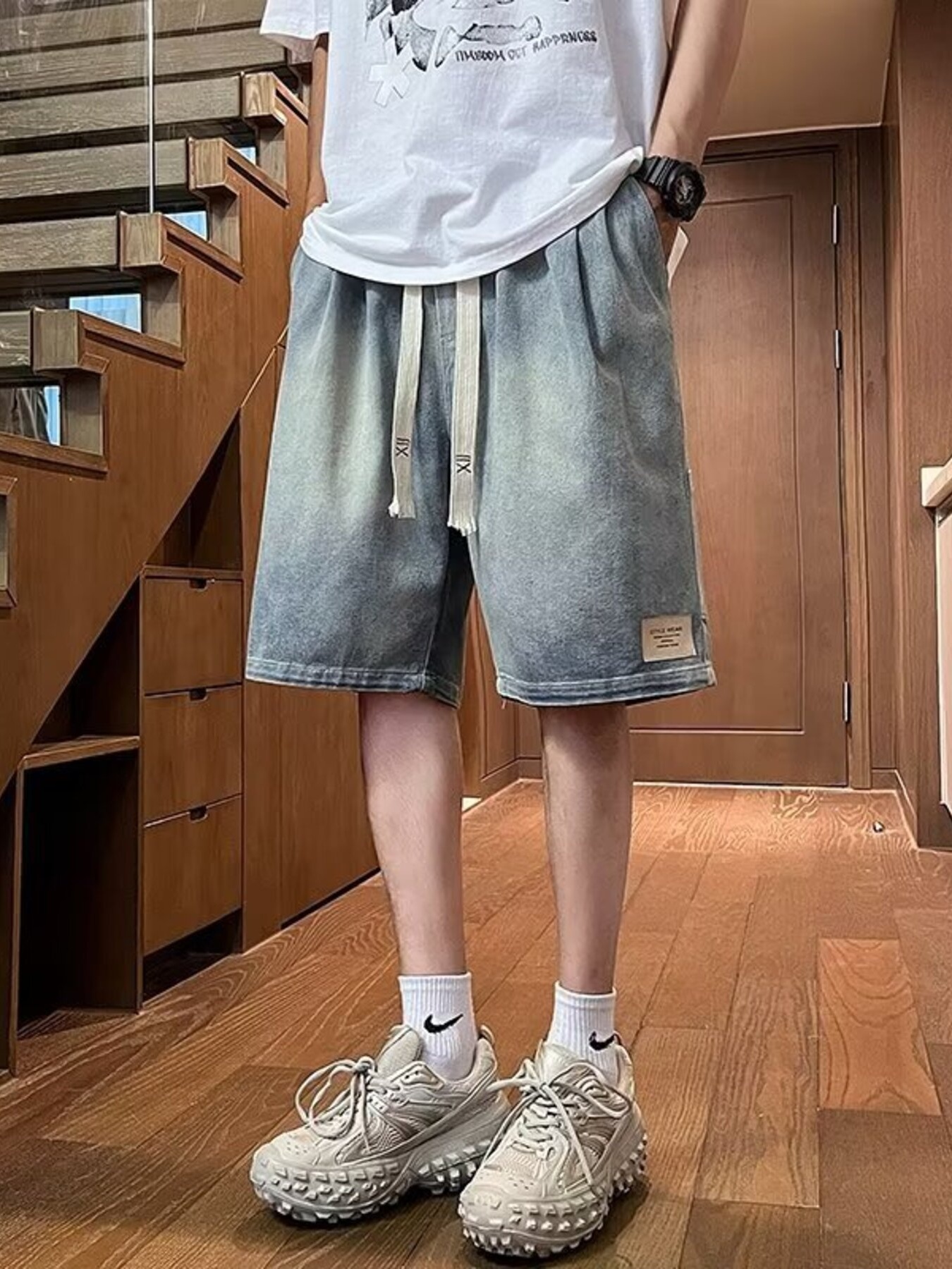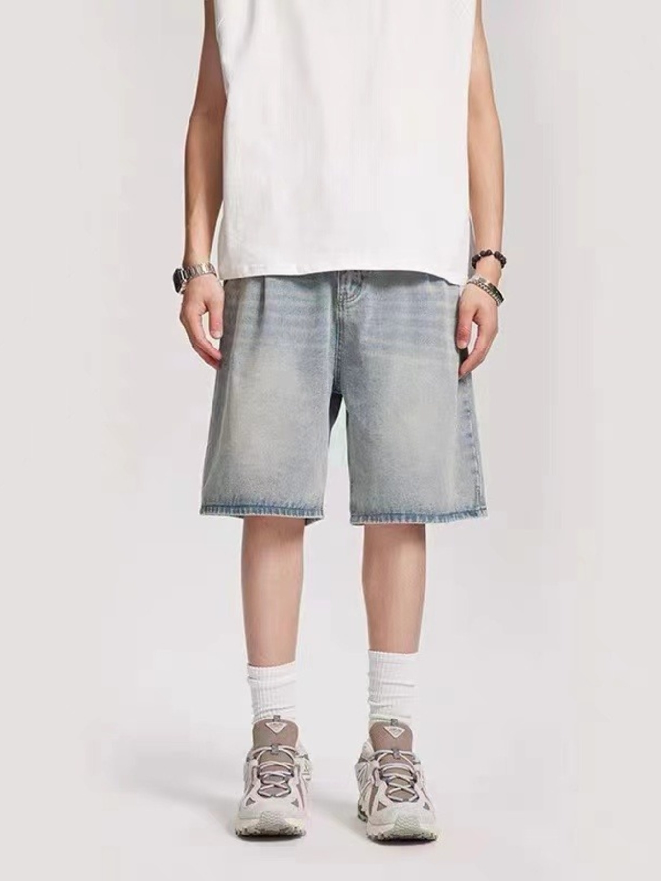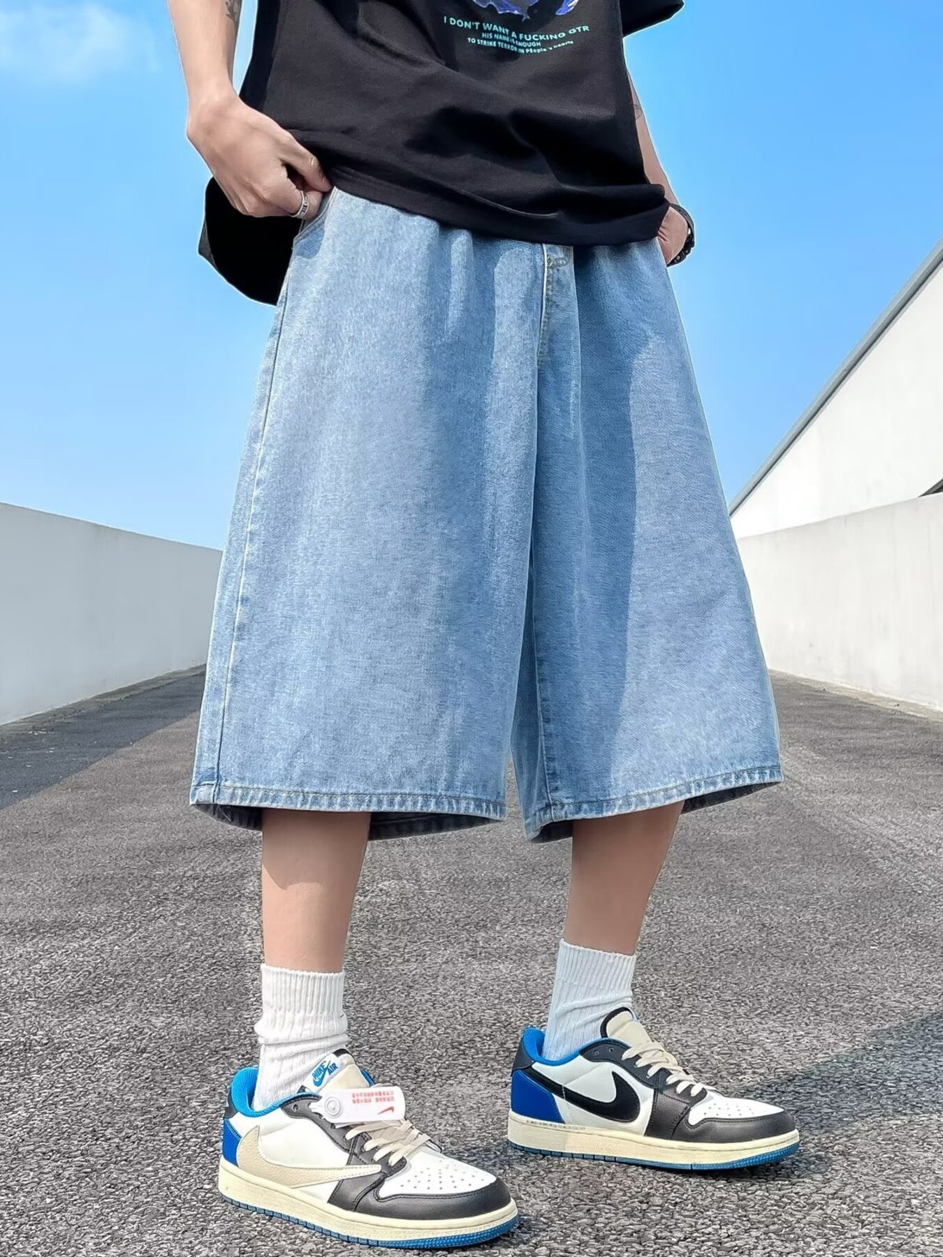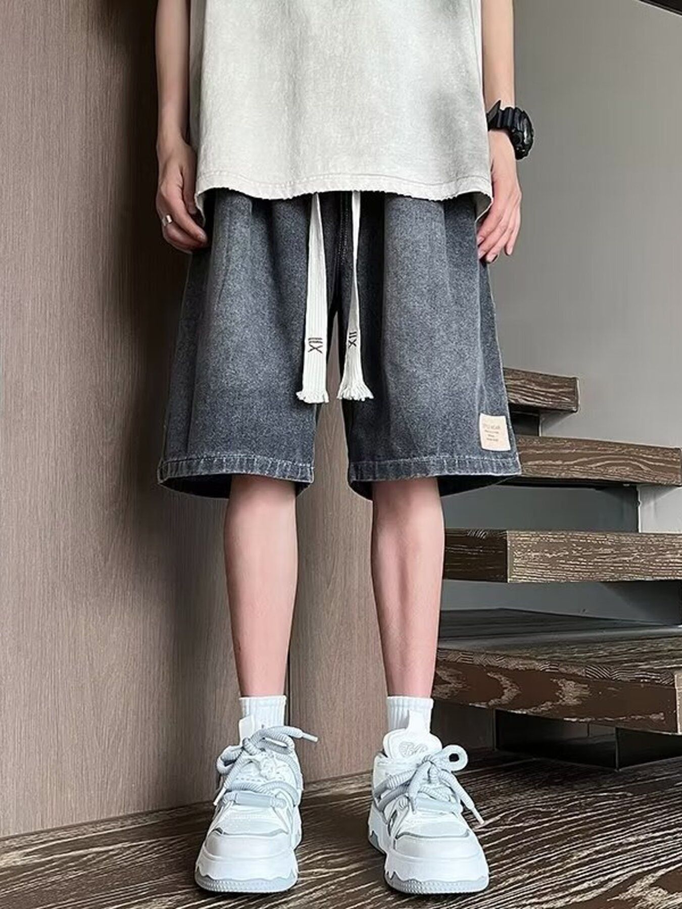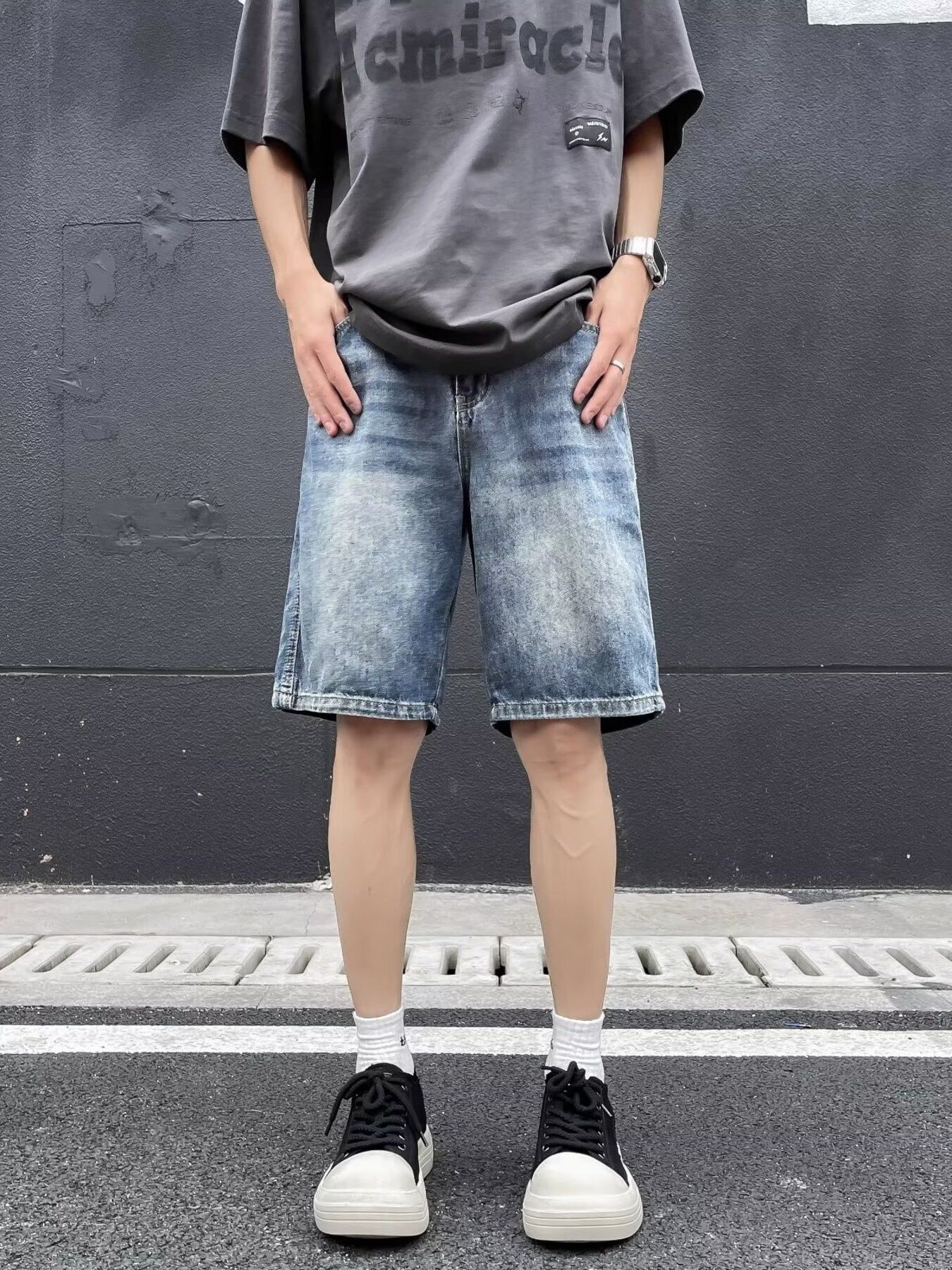 Men's Plus Size Vintage Wash Wide Leg Denim Shorts