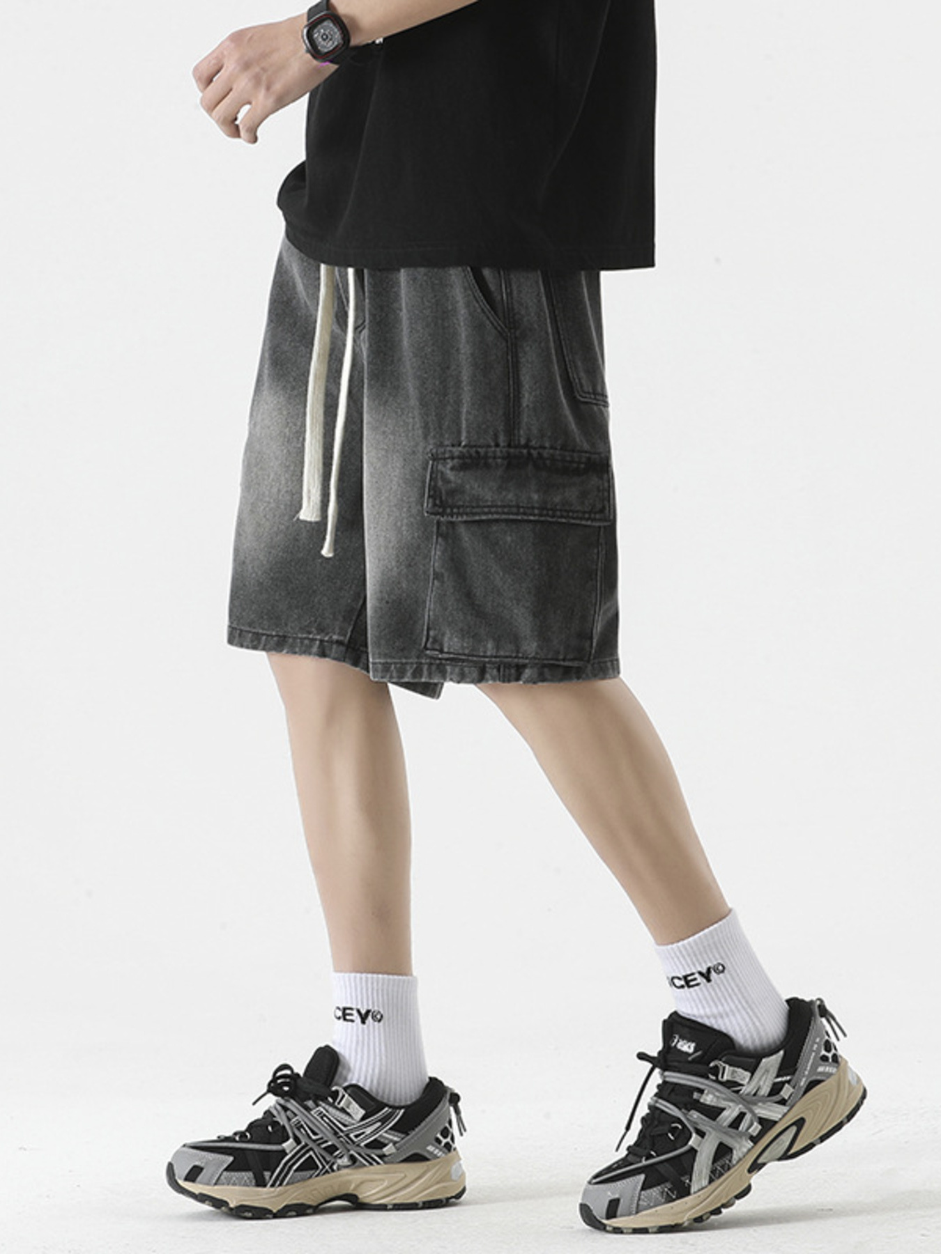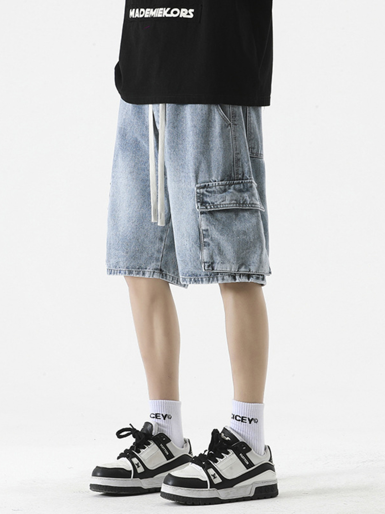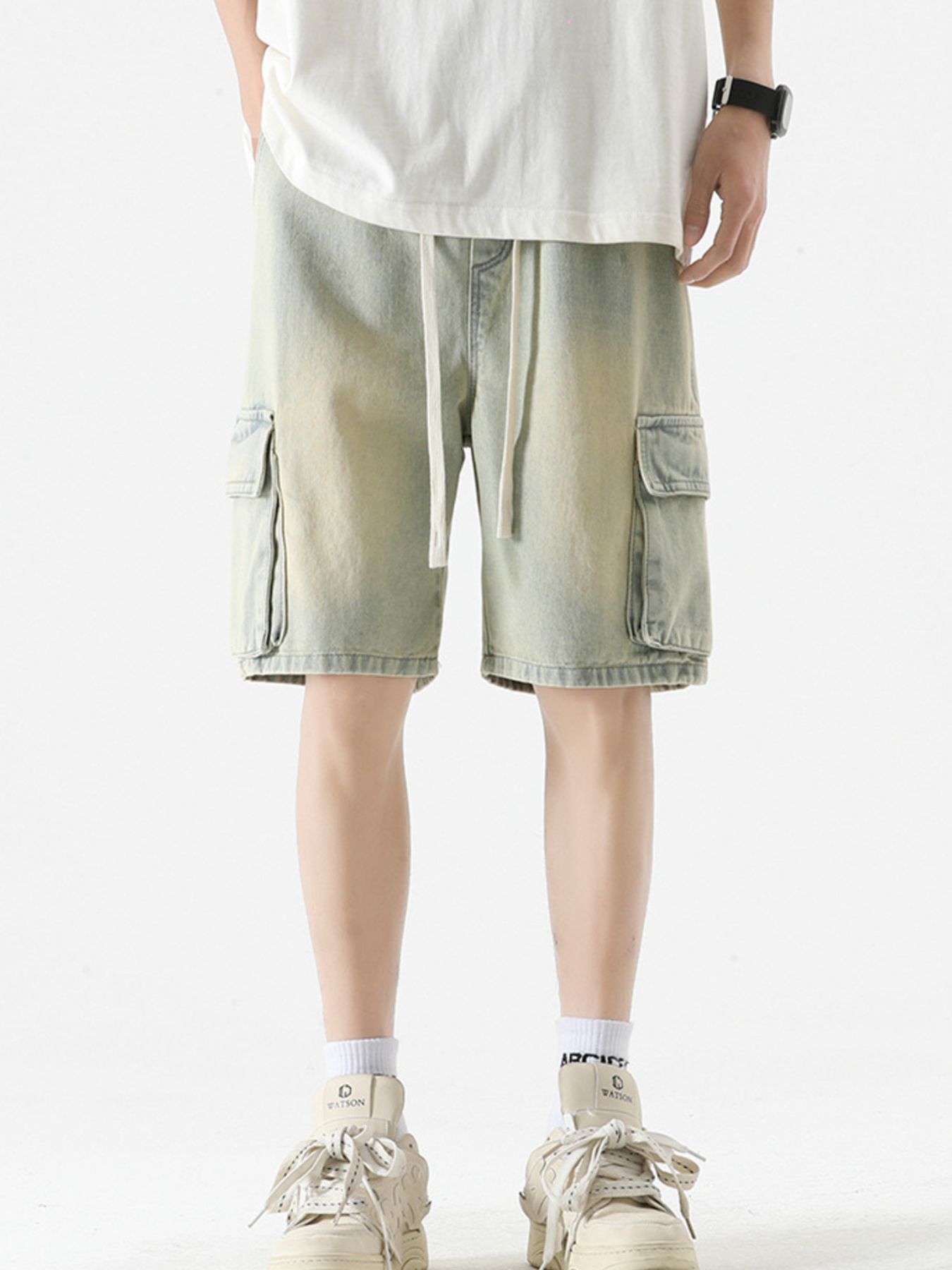 Men's Full Size Vintage Wash Cargo Denim Shorts Plus Size