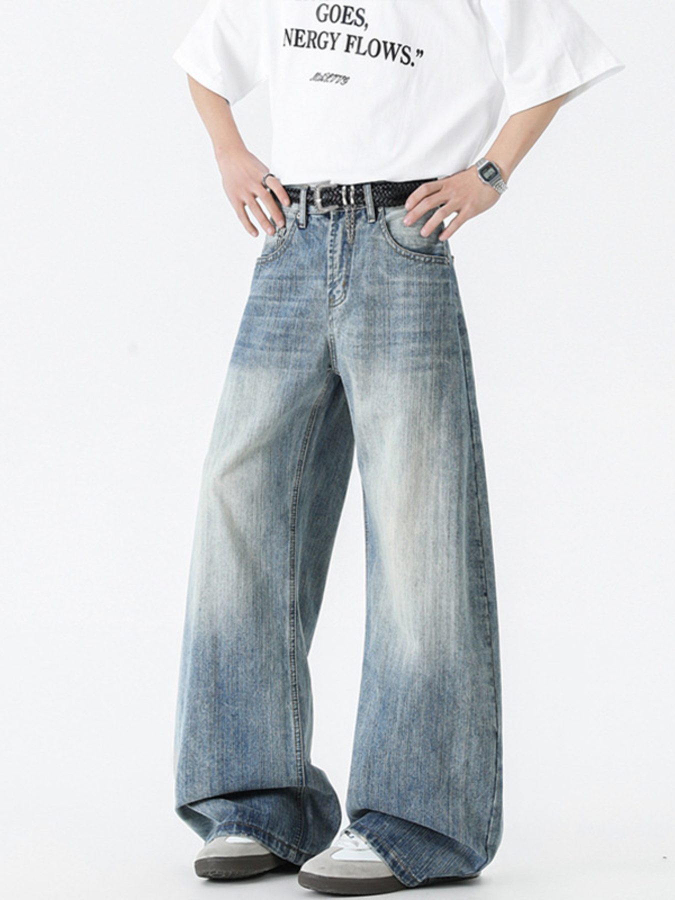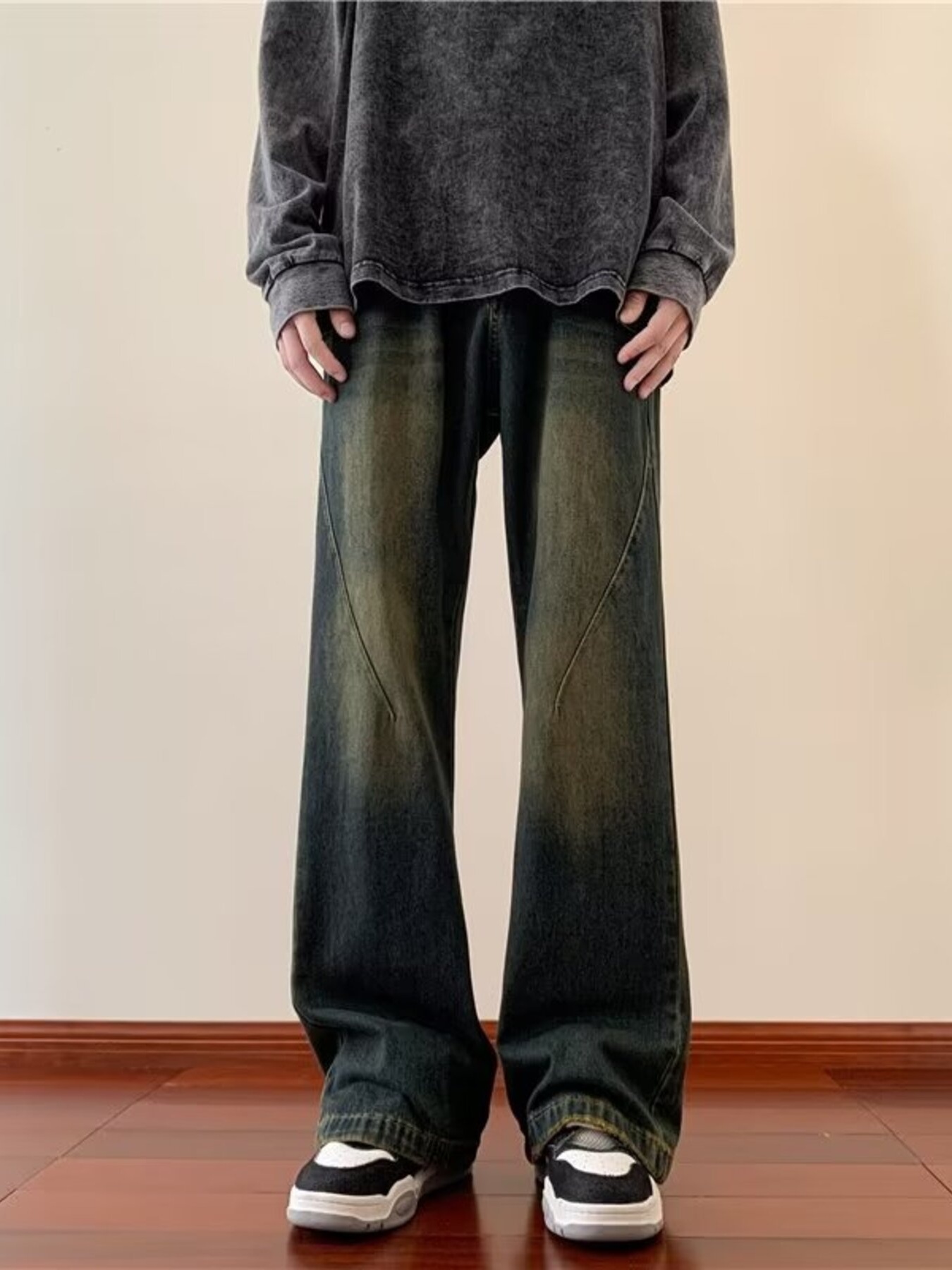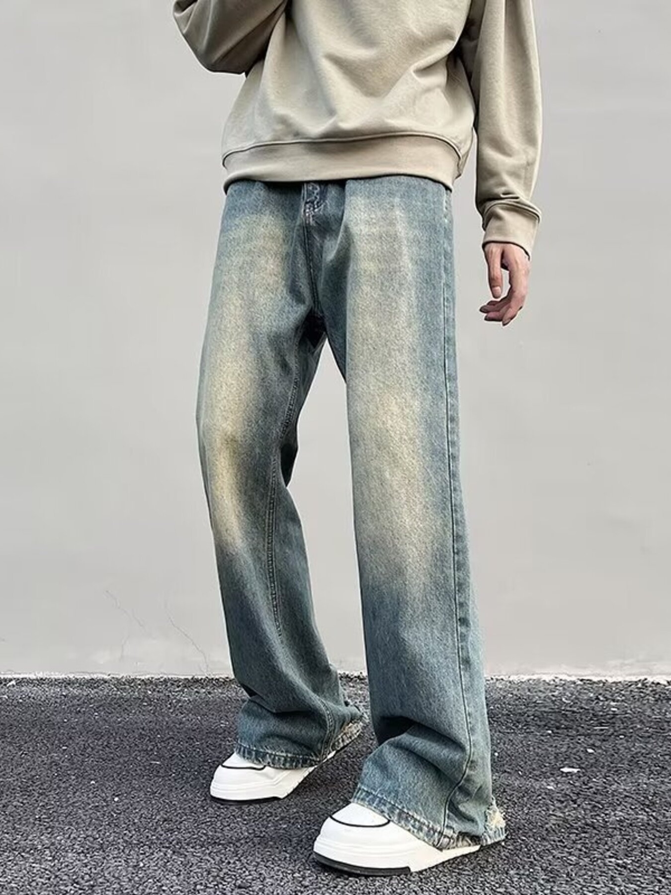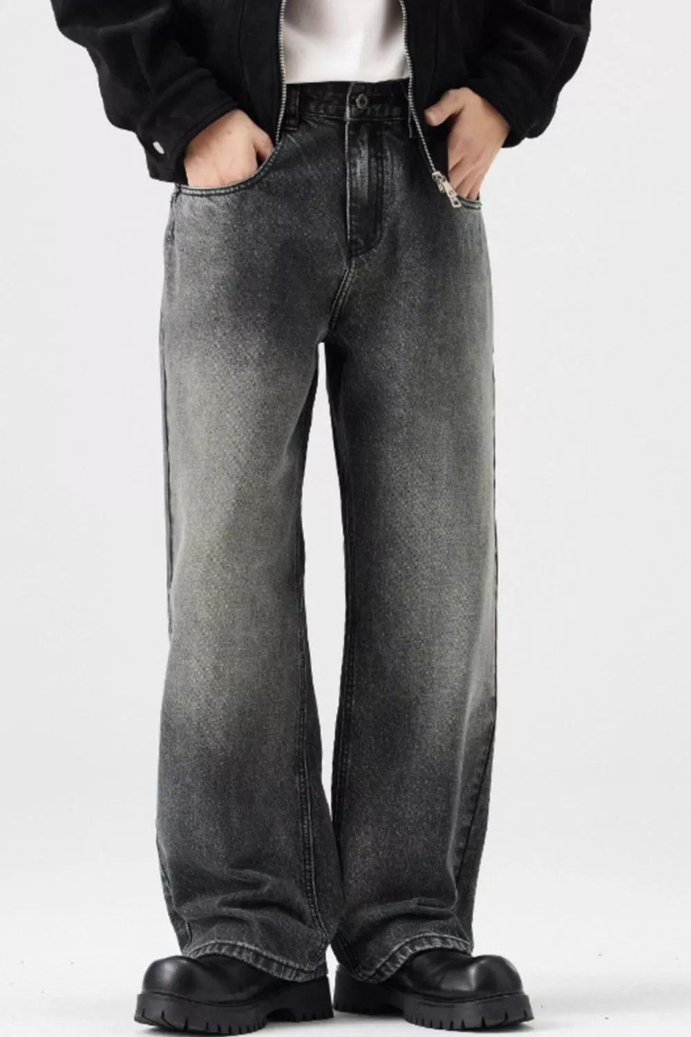 Men's Plus Size Vintage Wash Wide Leg Jeans