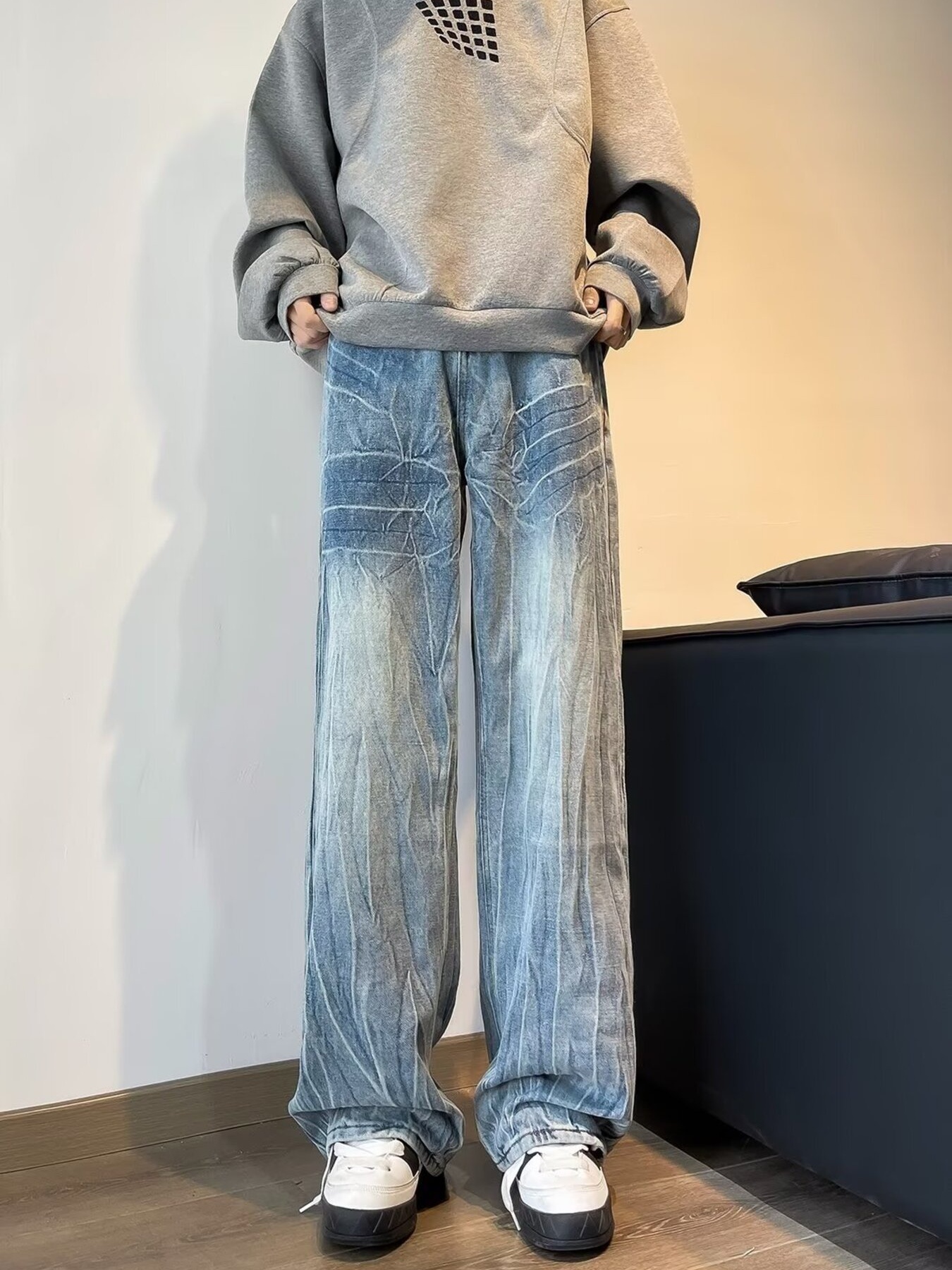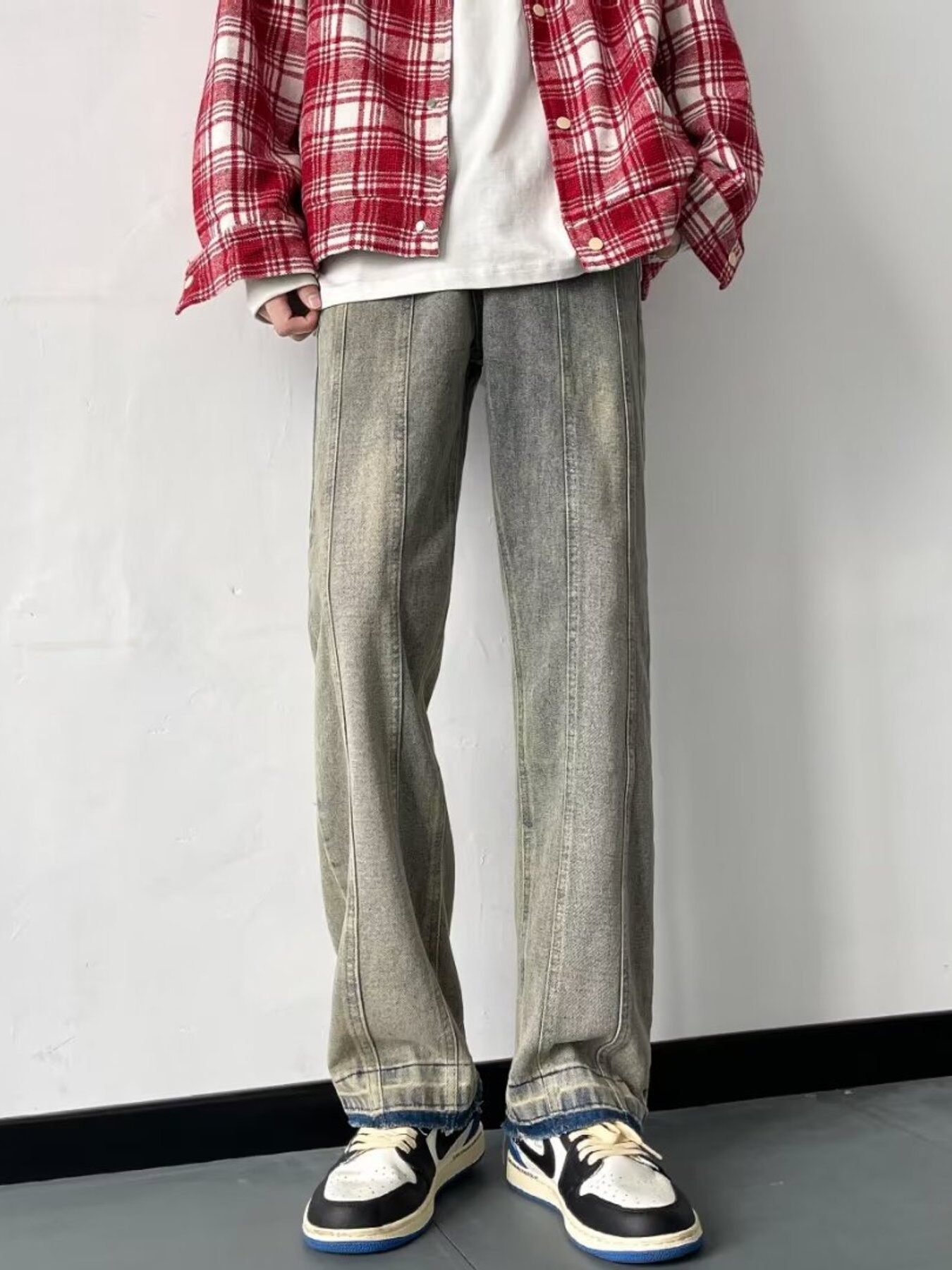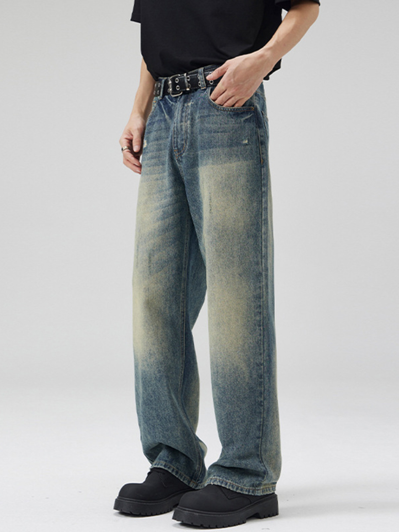 Men's Plus Size Vintage Wash Wide Leg Jeans