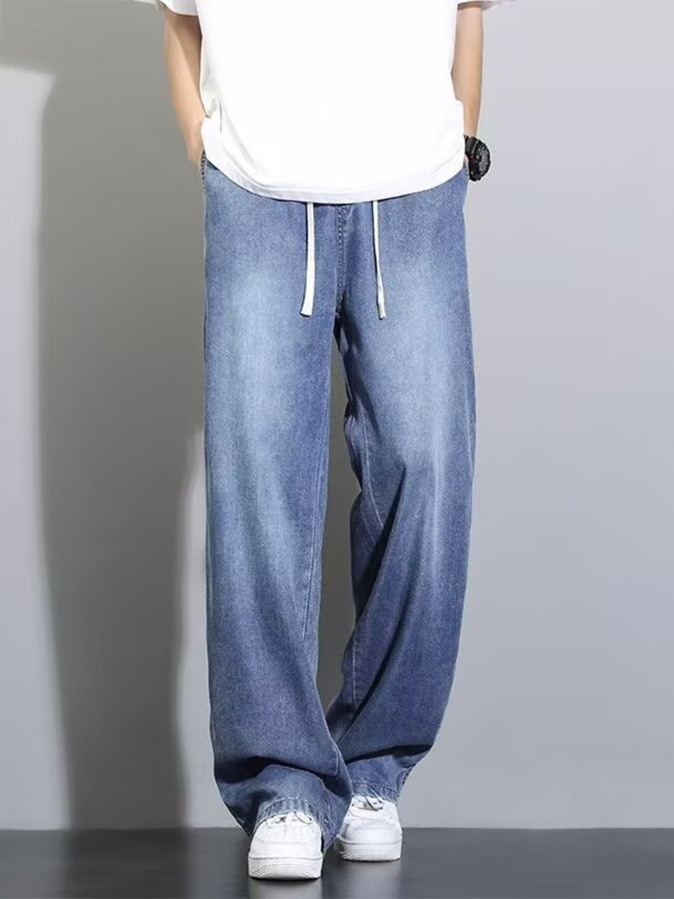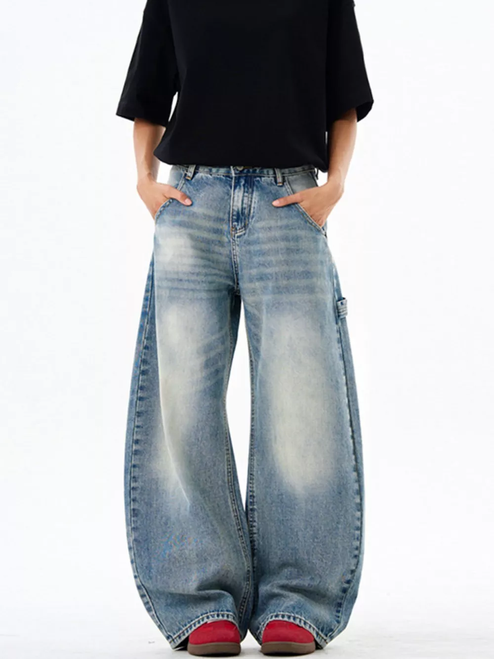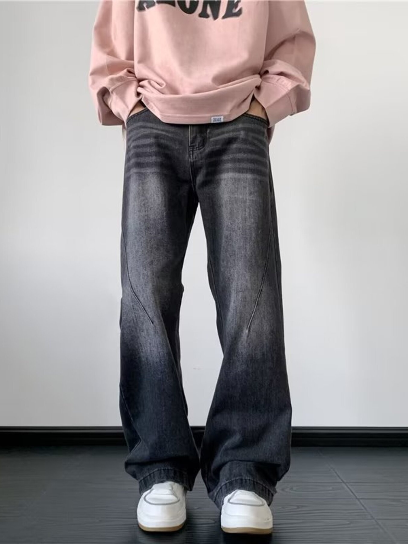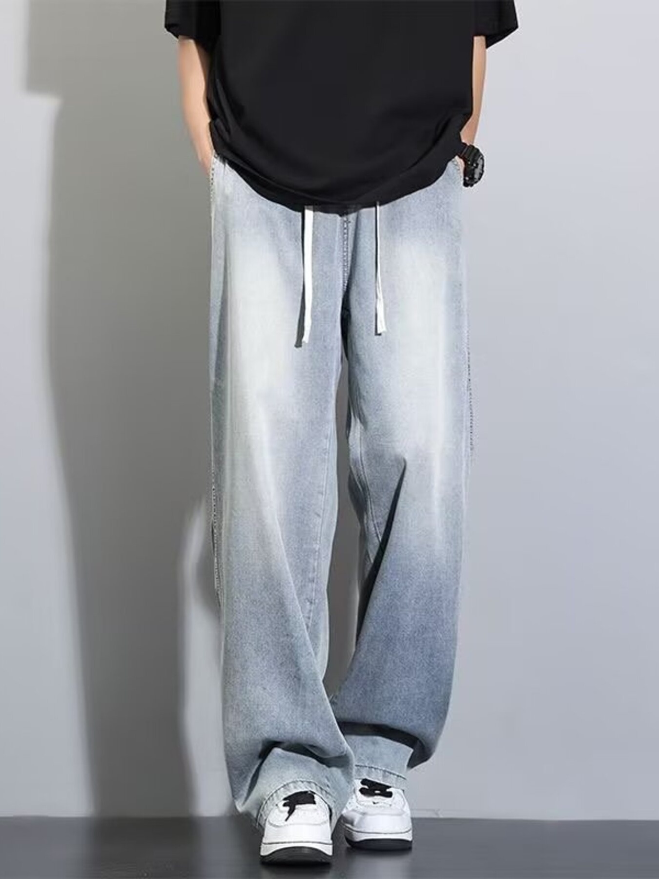 Men's Plus Size Vintage Wash Wide Leg Jeans