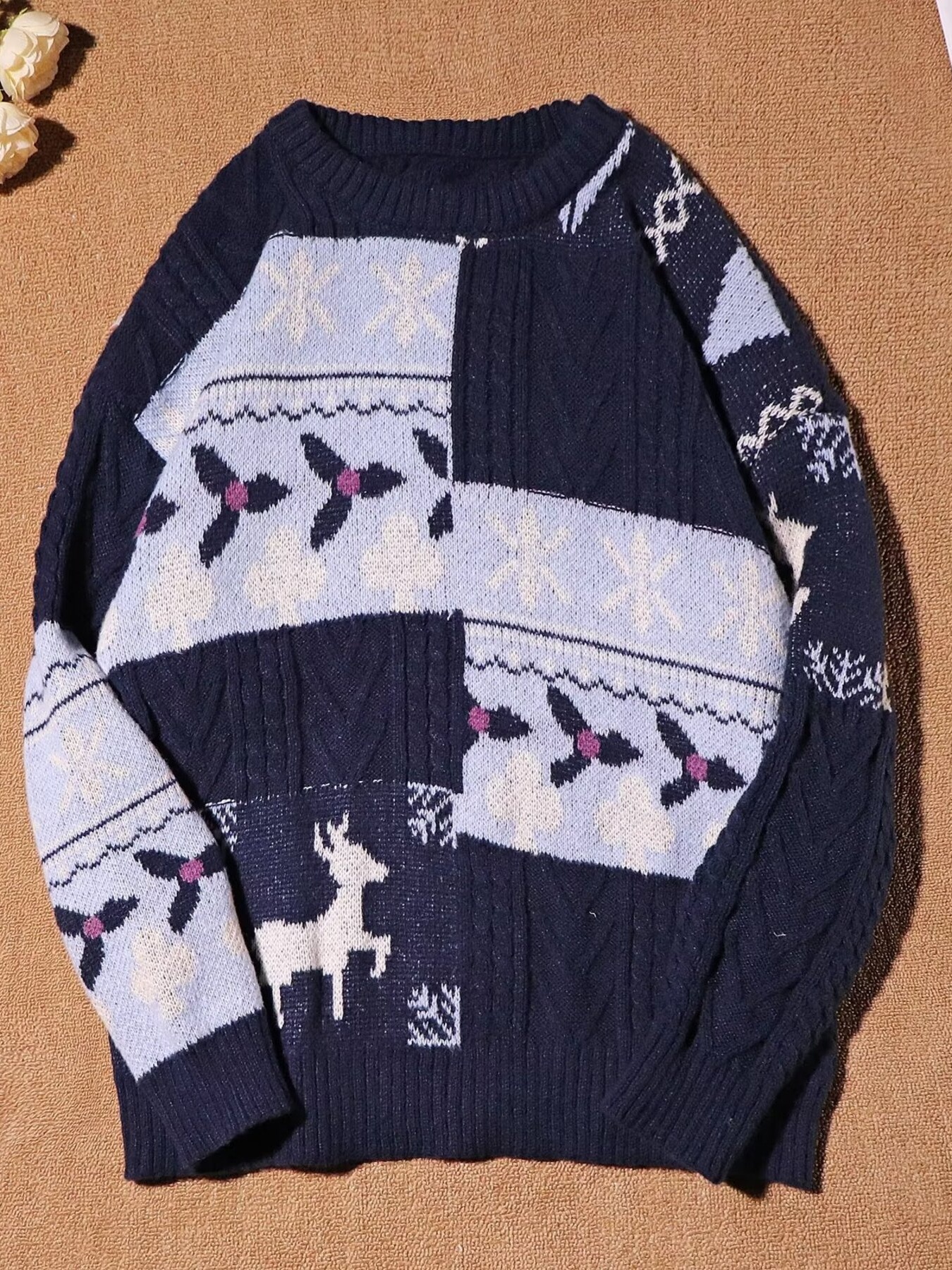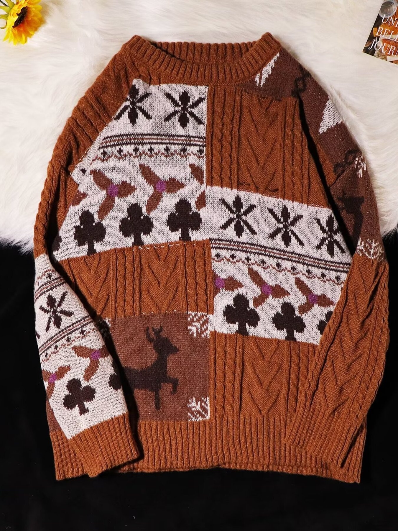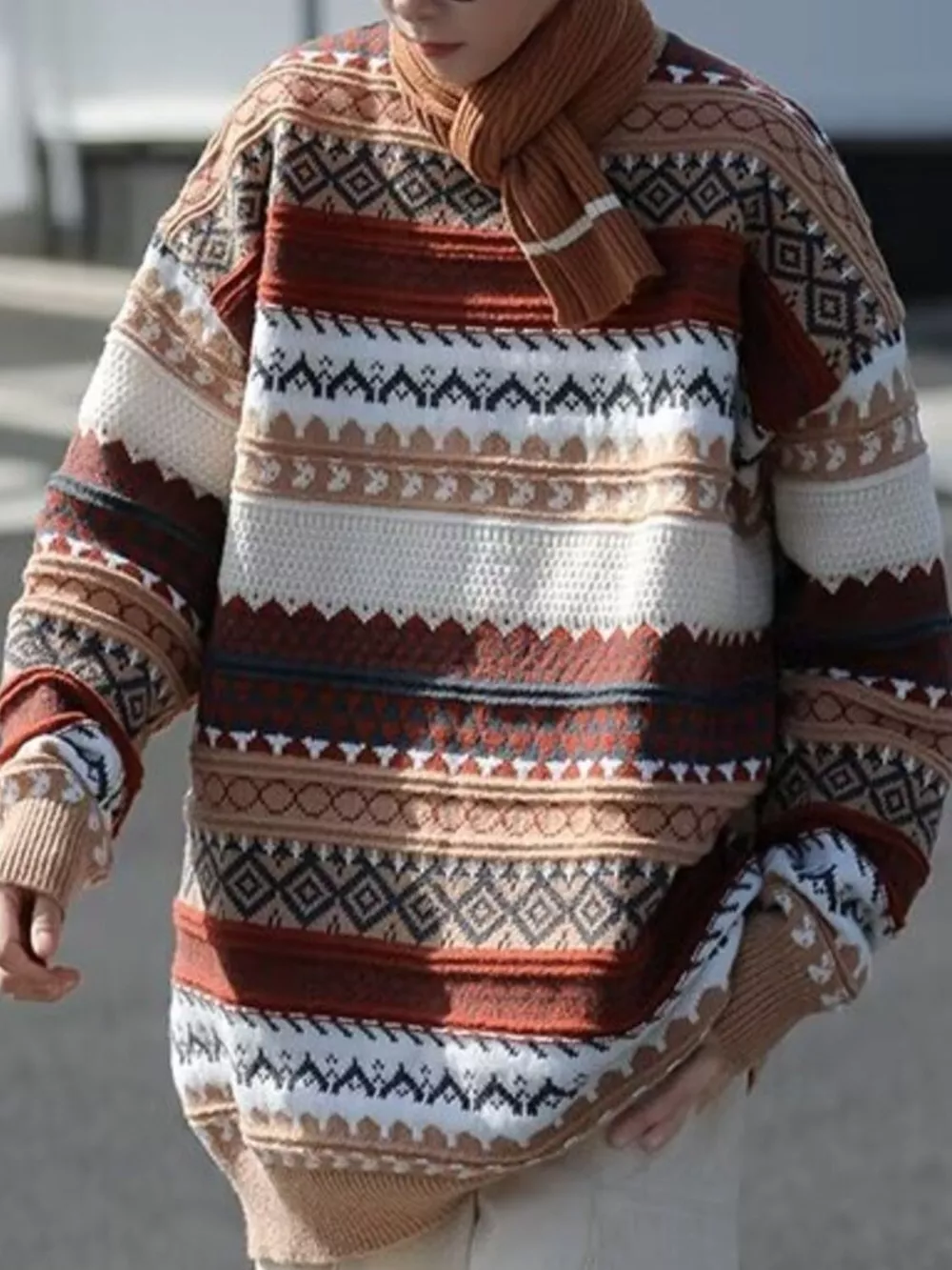 Men's Vintage Pattern Round Neck Knitted Sweater