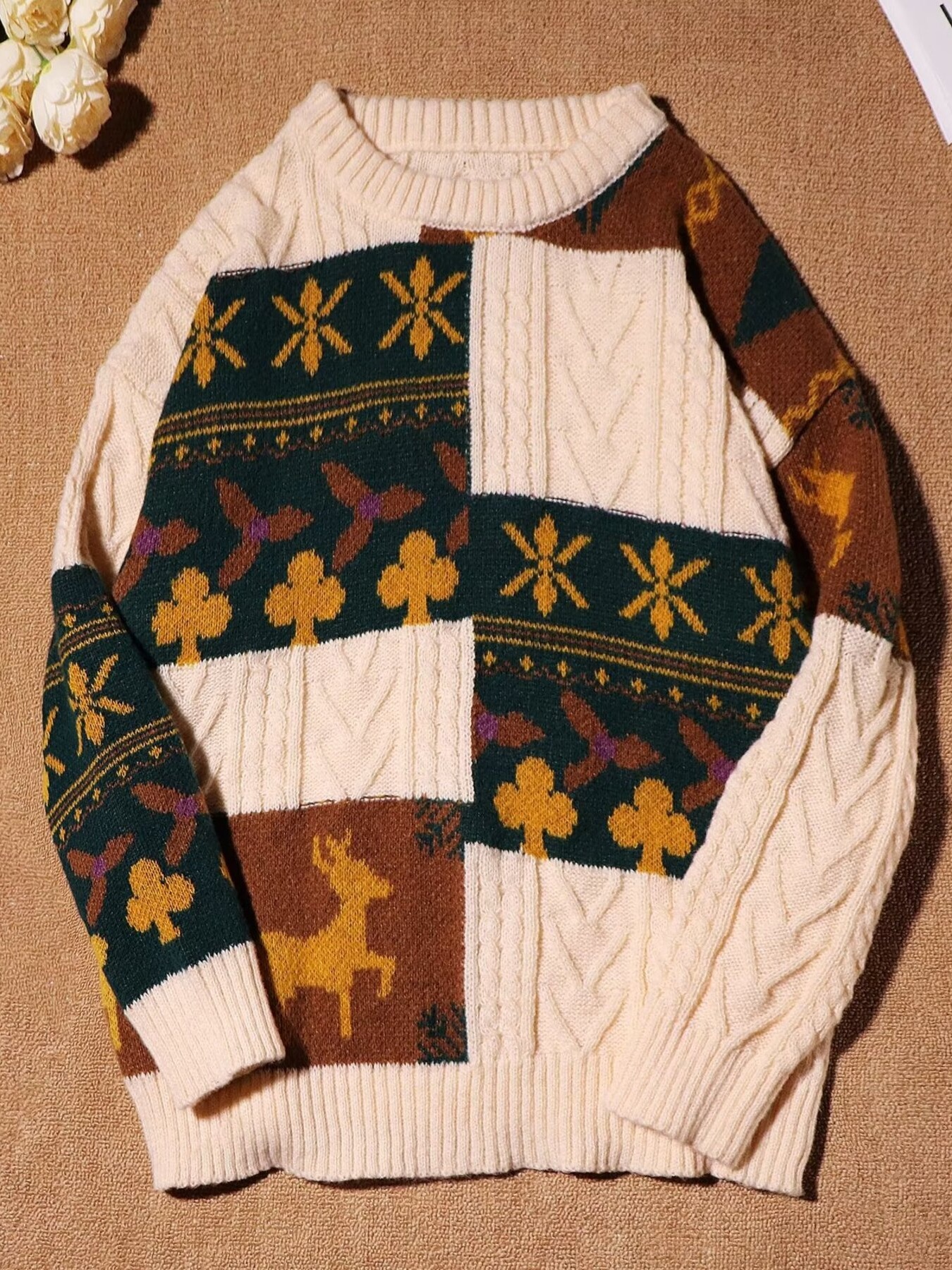 Men's Plus Size Vintage Patterned Cable Knit Sweater
