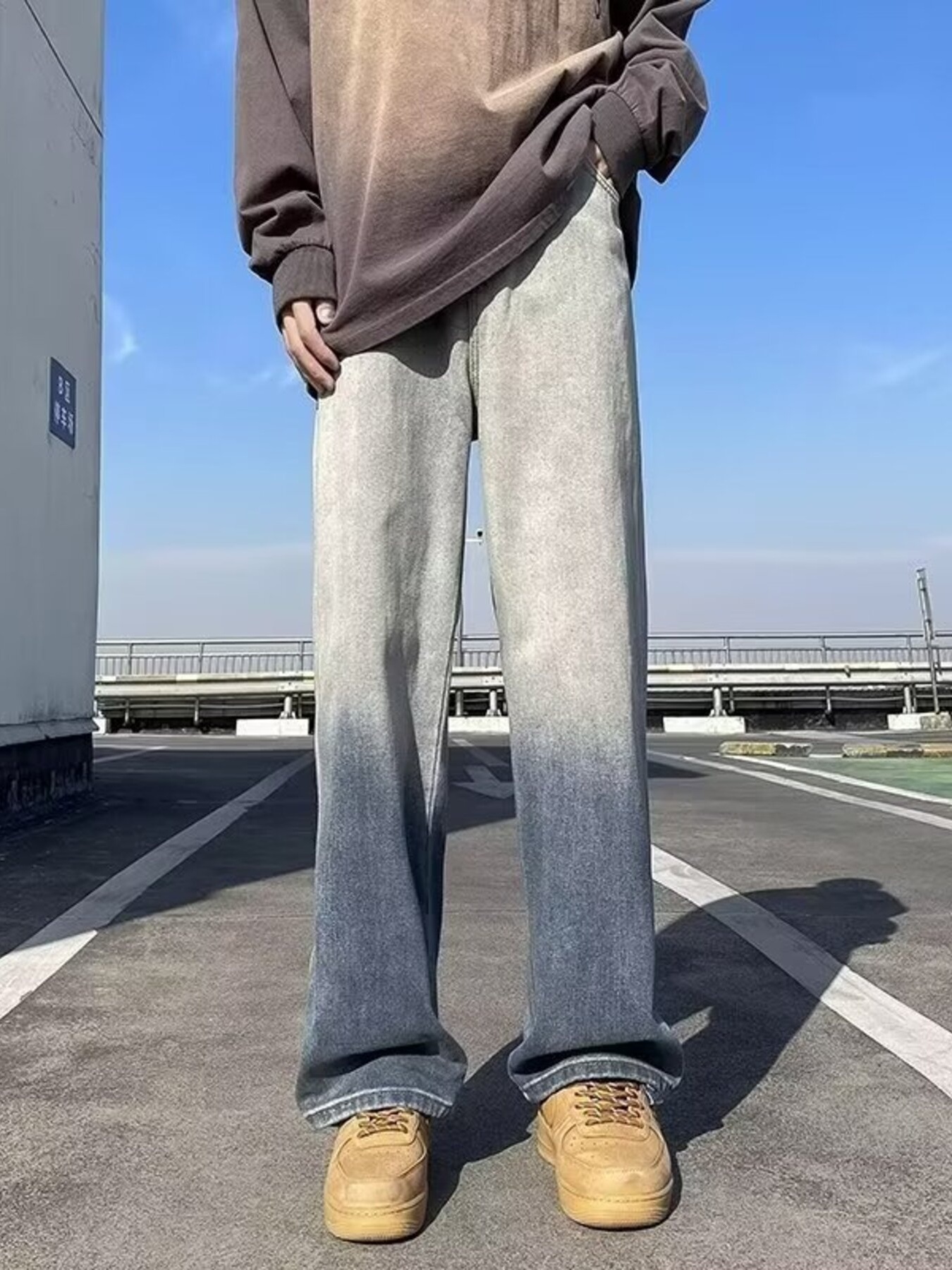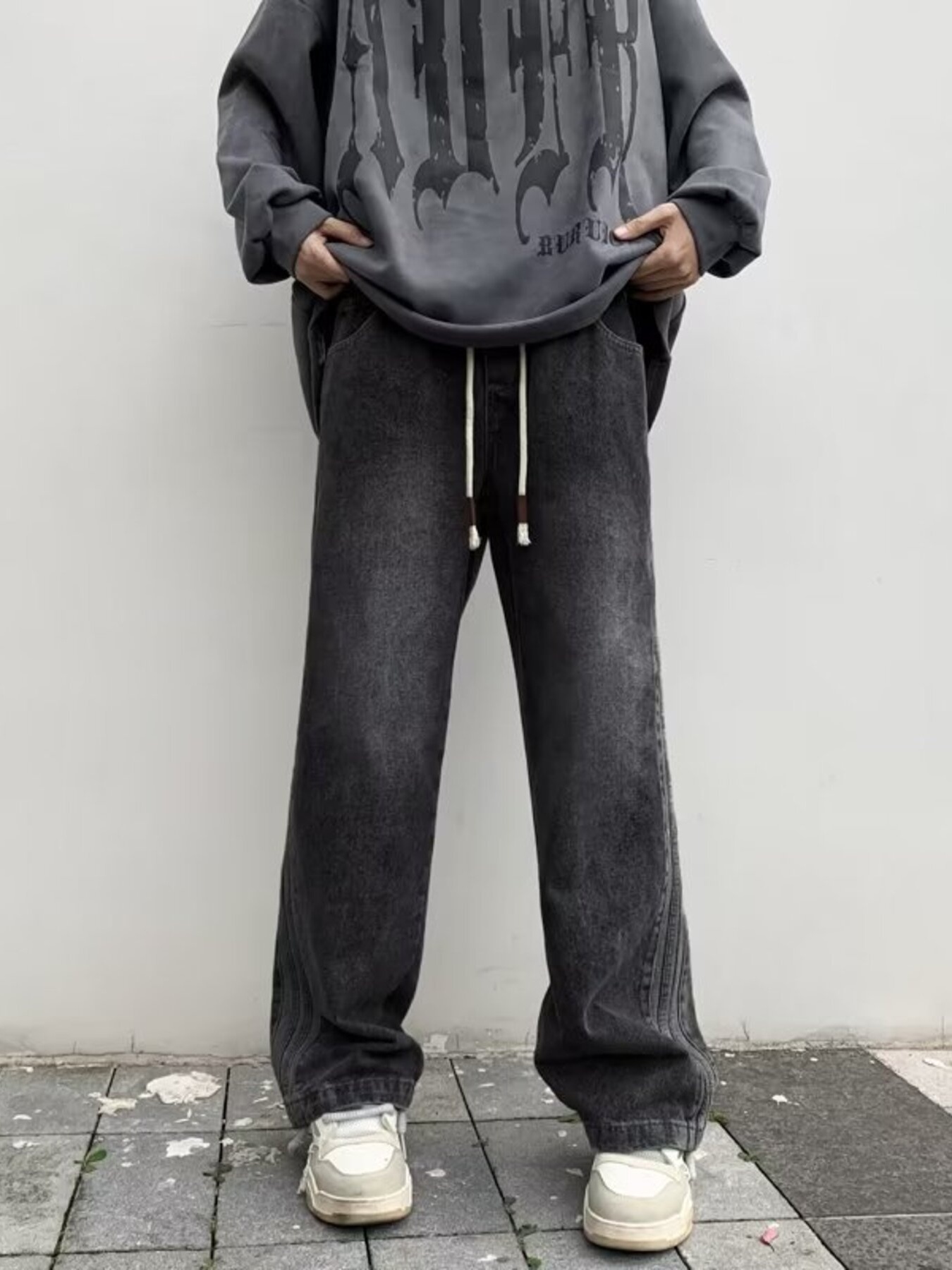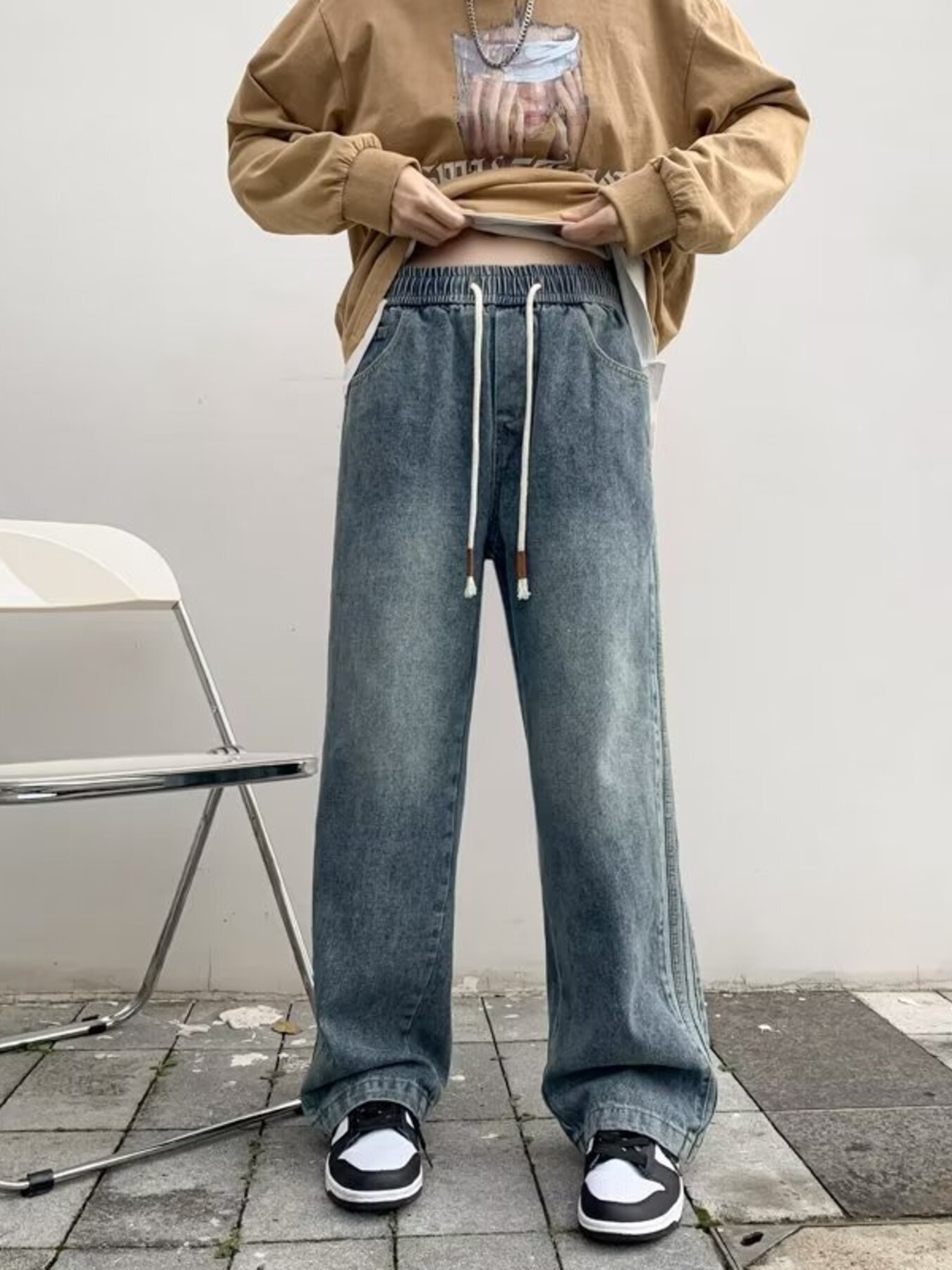Men's Full Size Vintage Wash Wide Leg Jeans Plus Size