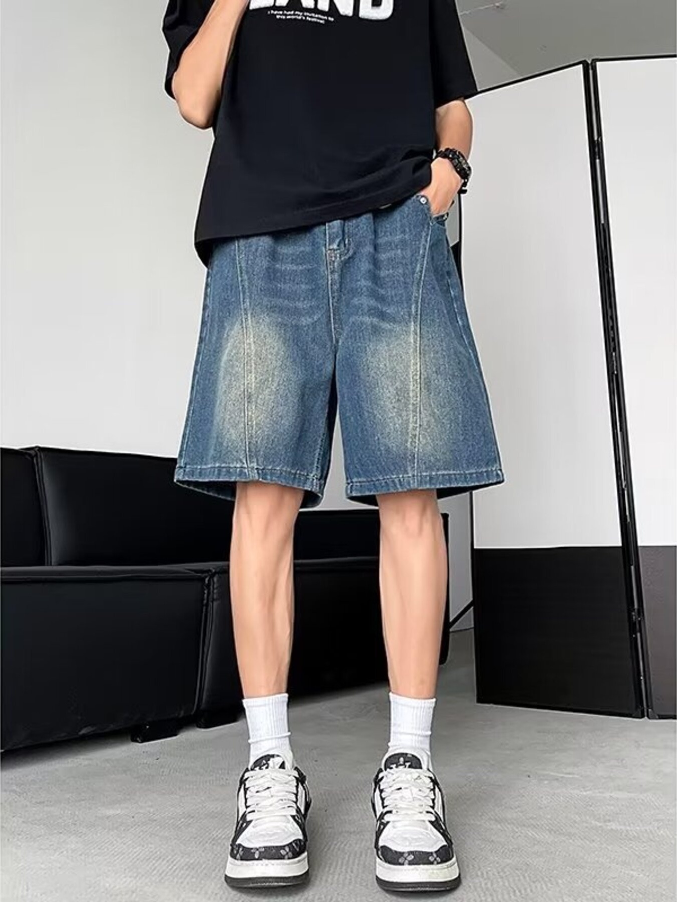 Men's Plus Size Vintage Wash Loose Fit Denim Shorts