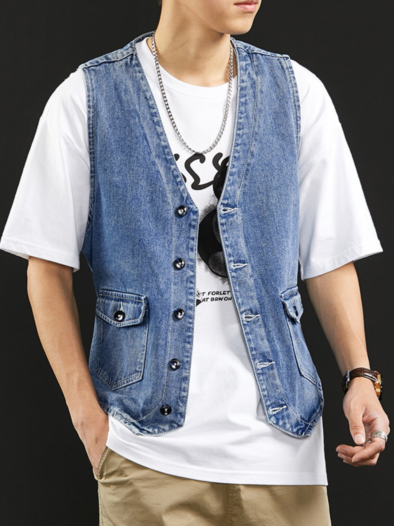 Men's Vintage Washed Denim Vest