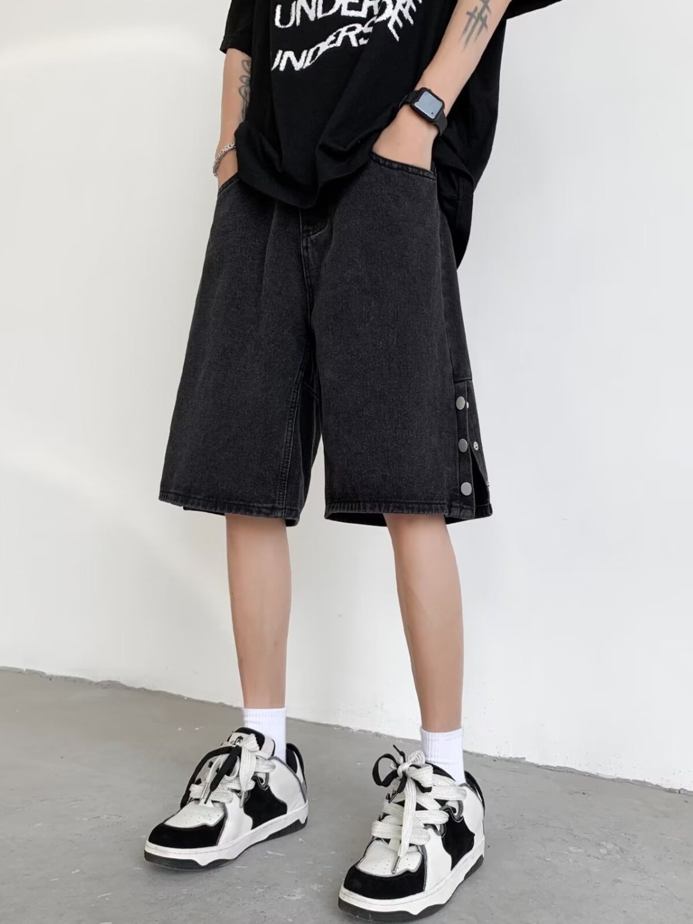 Men's Full Size Vintage Wash Wide Leg Denim Shorts Plus Size