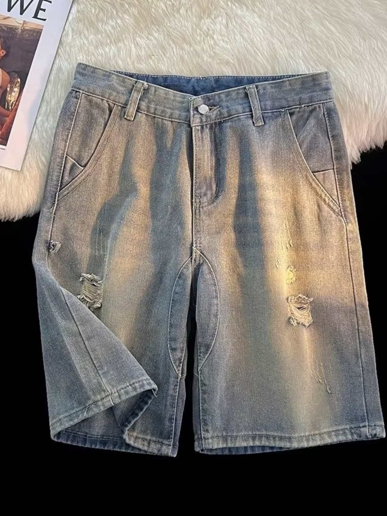 Men's Full Size Ripped Vintage Wash Denim Shorts Plus Size