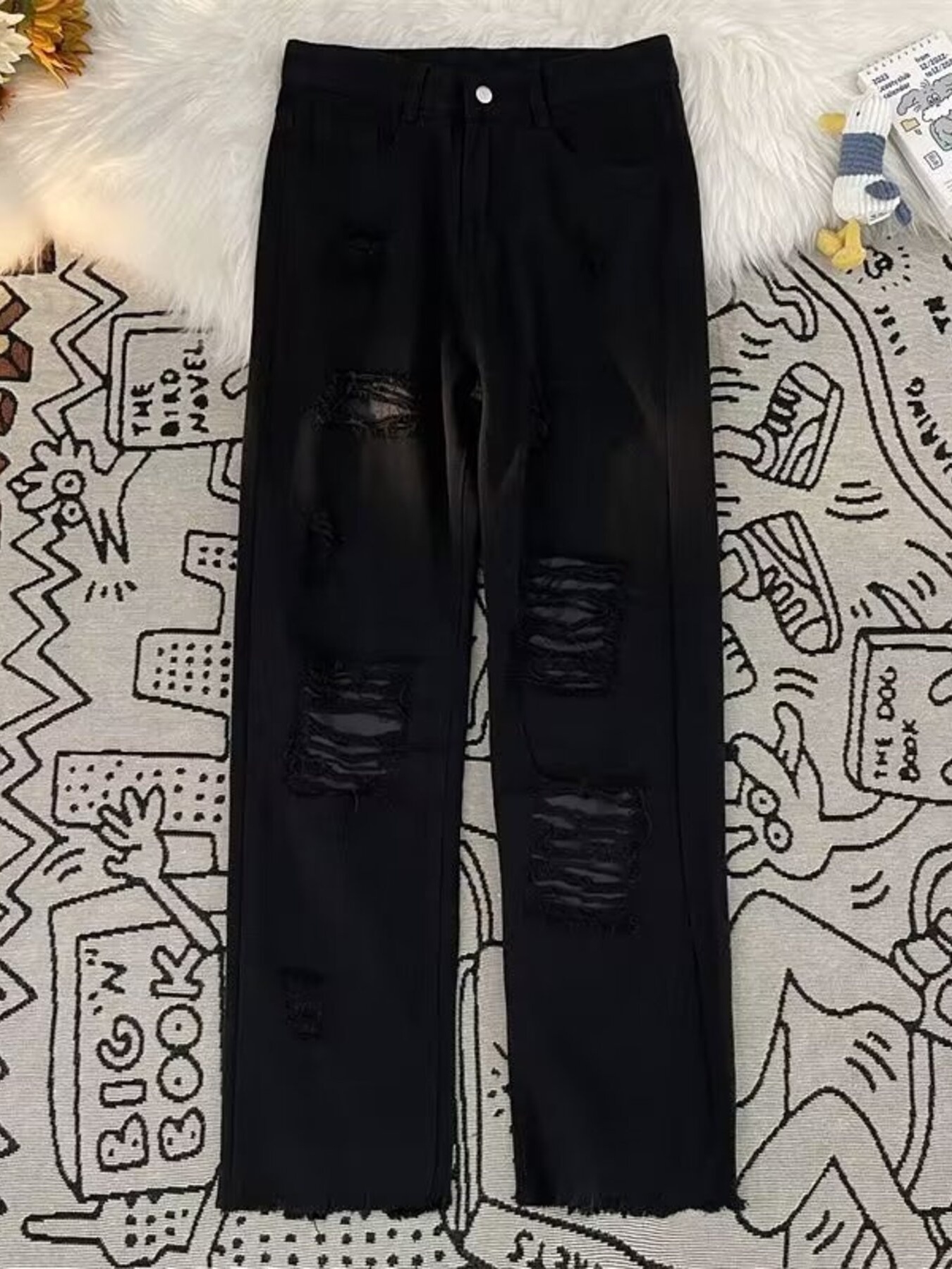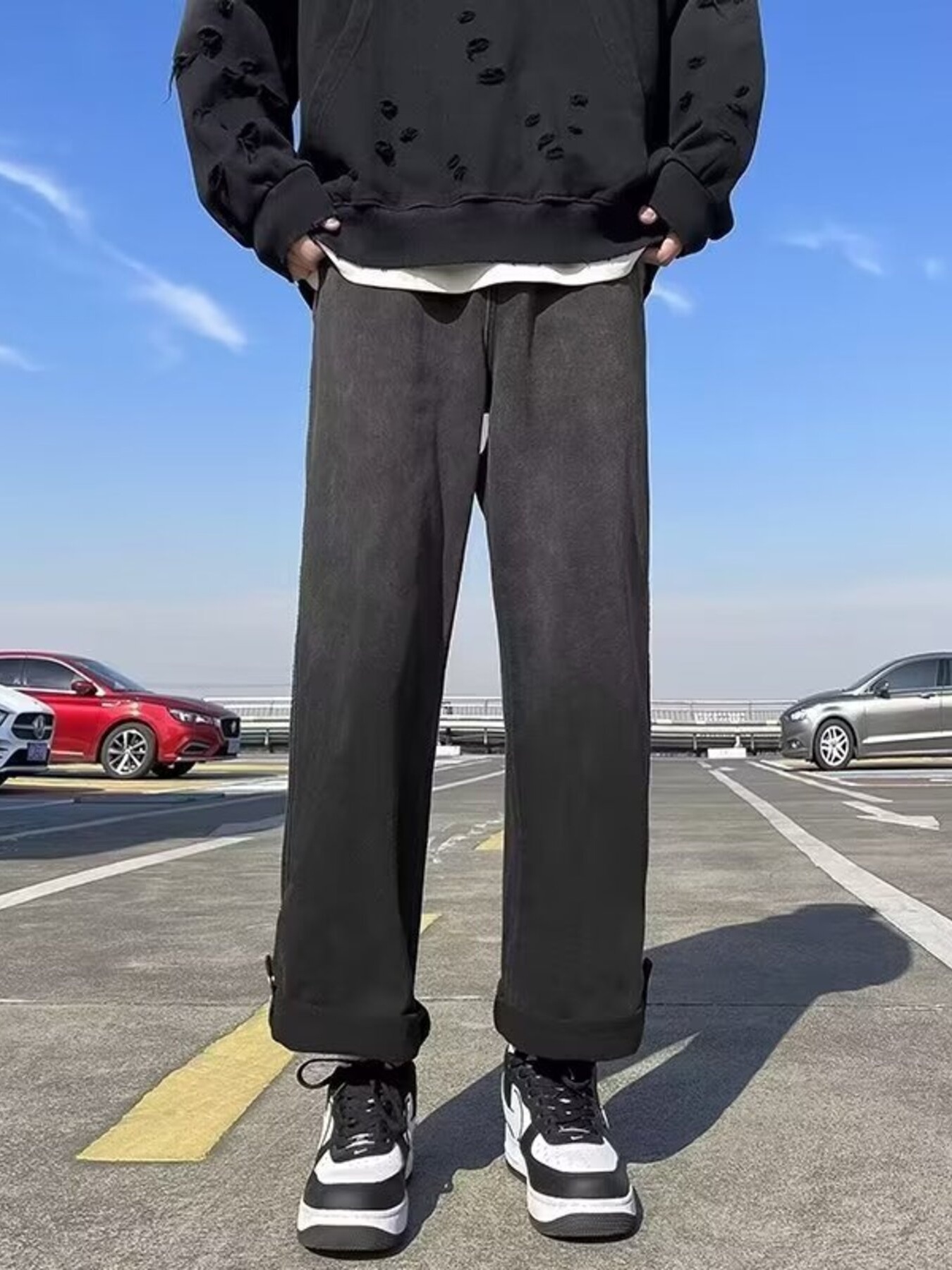Men's Full Size Vintage Distressed Wide Leg Jeans Plus Size