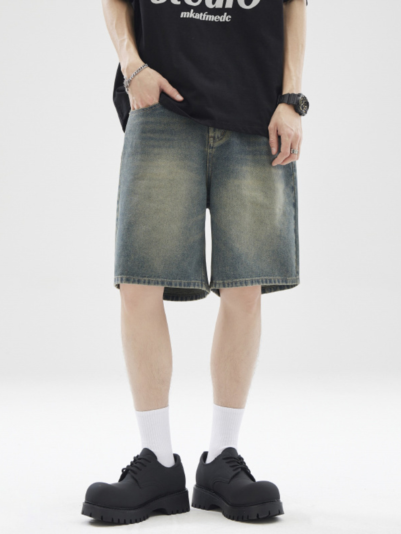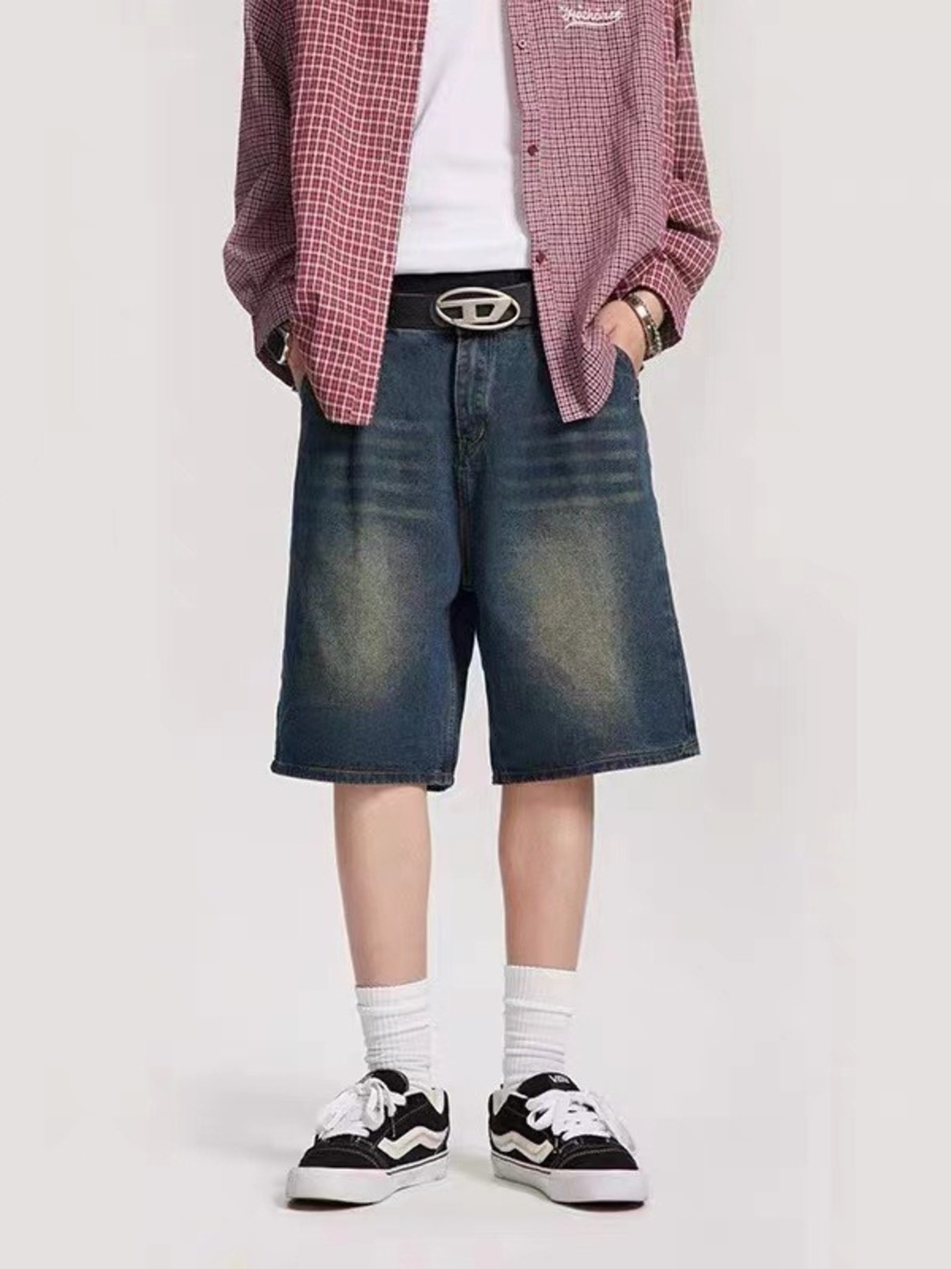 Men's Full Size Vintage Wash Loose Fit Denim Shorts Plus Size