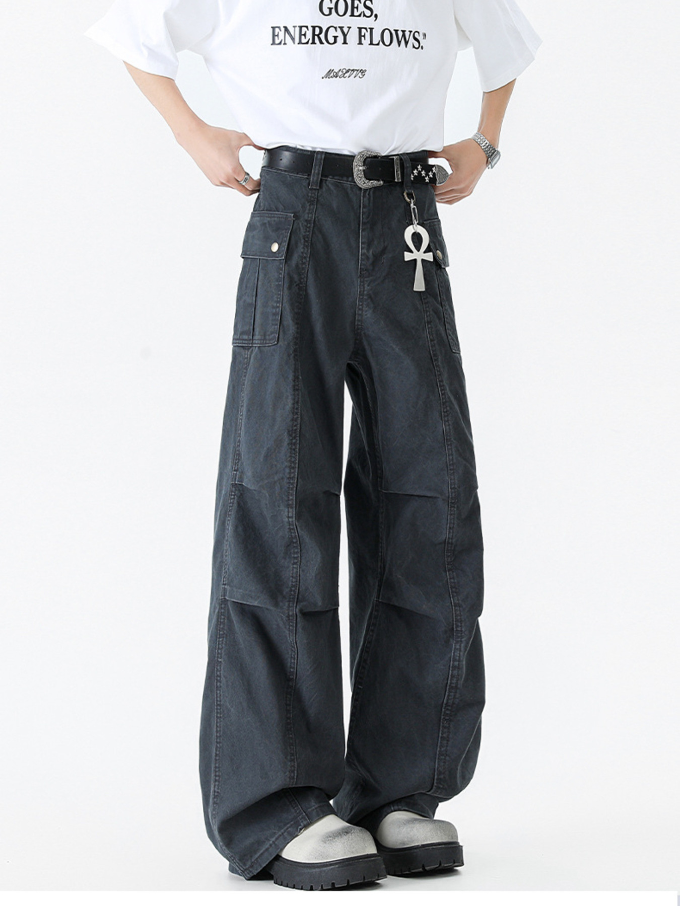 Men's Vintage Wide Leg Cargo Jeans