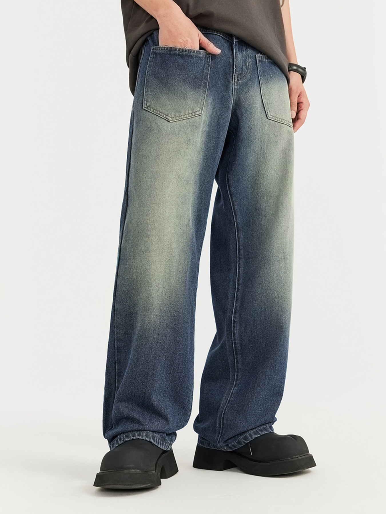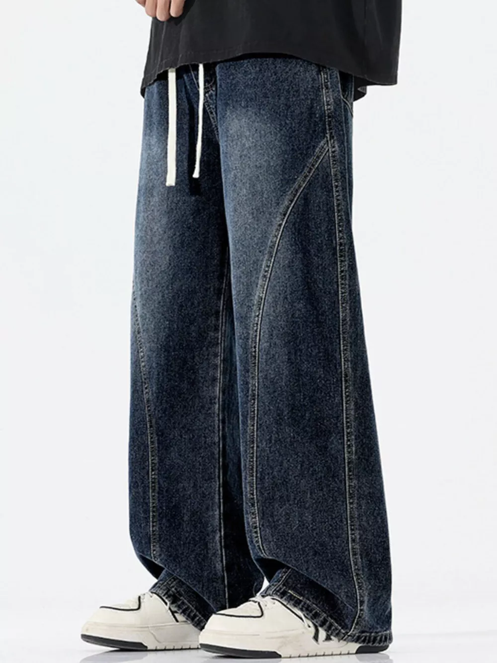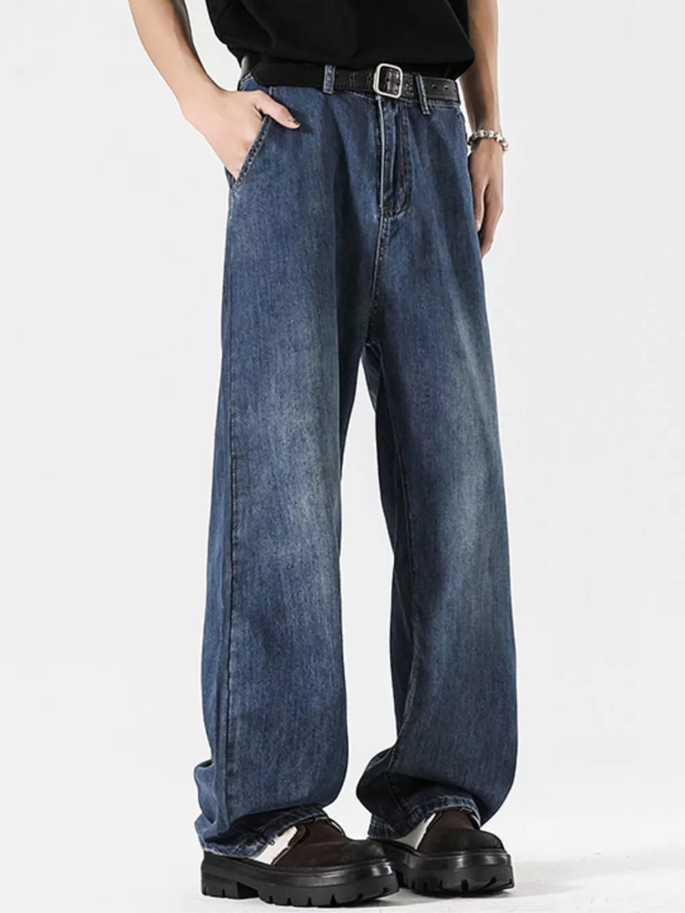 Men's Plus Size Vintage Wash Wide Leg Jeans