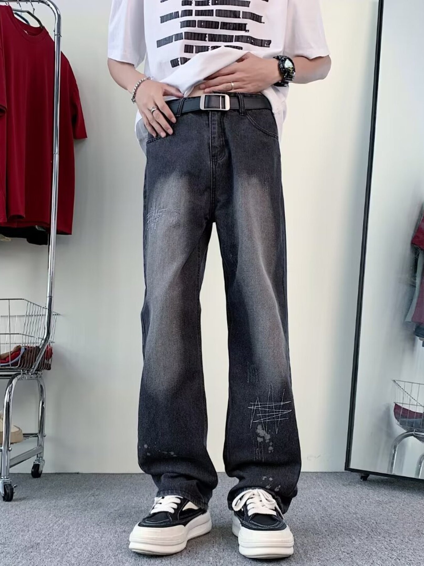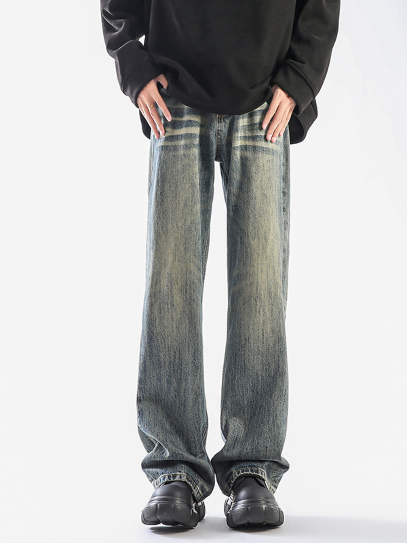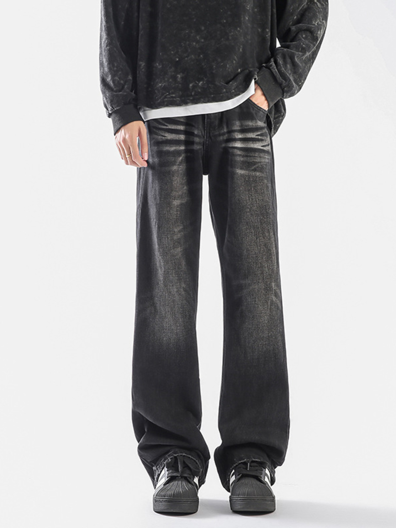 Men's Plus Size Vintage Wash Wide Leg Jeans