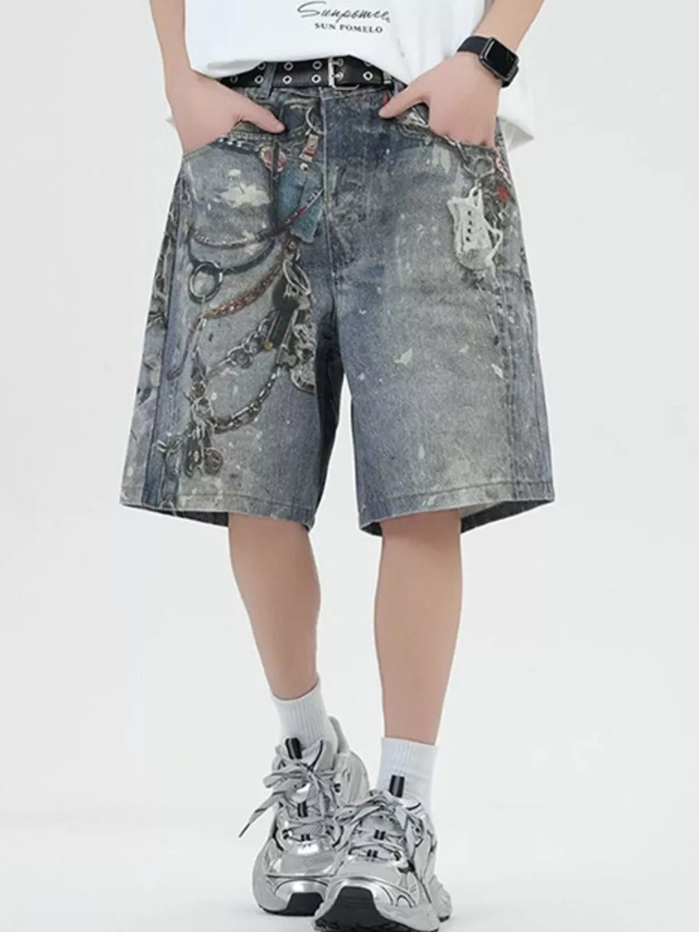 Men's Full Size Vintage Chain Print Denim Shorts Plus Size