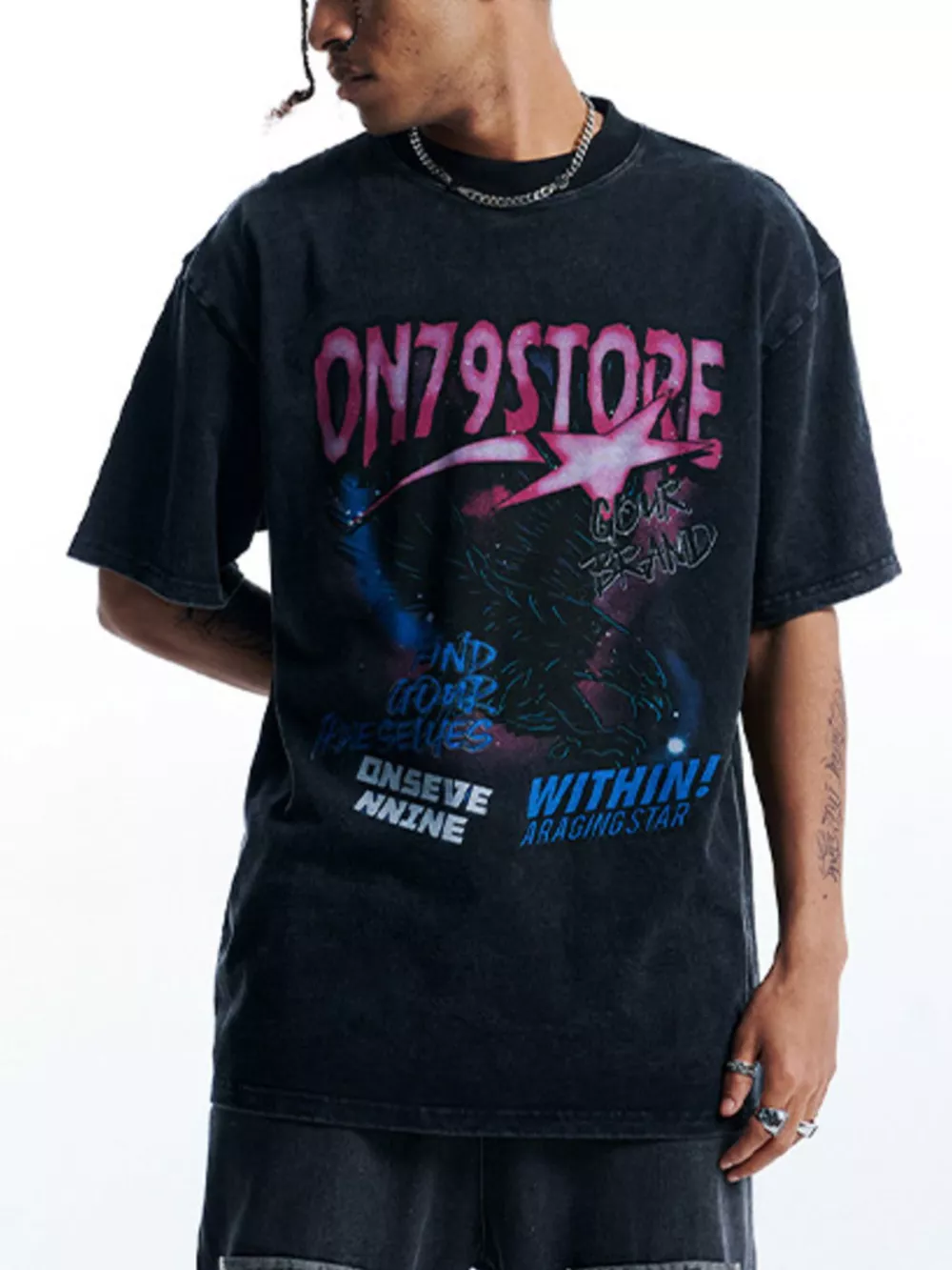 Men's Vintage Graphic Oversized Washed T-Shirt