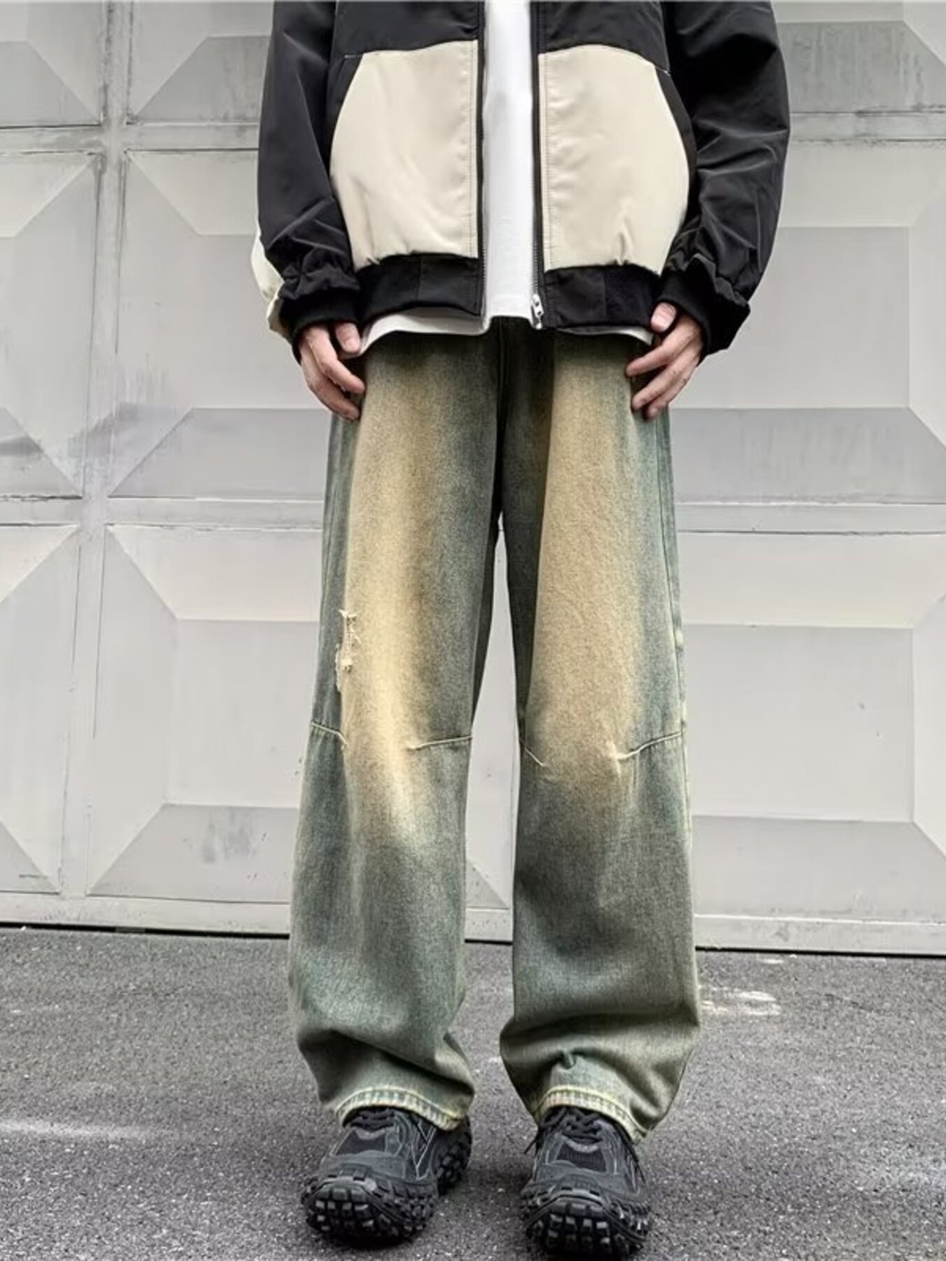 Men's Full Size Vintage Wash Ripped Wide Leg Jeans Plus Size