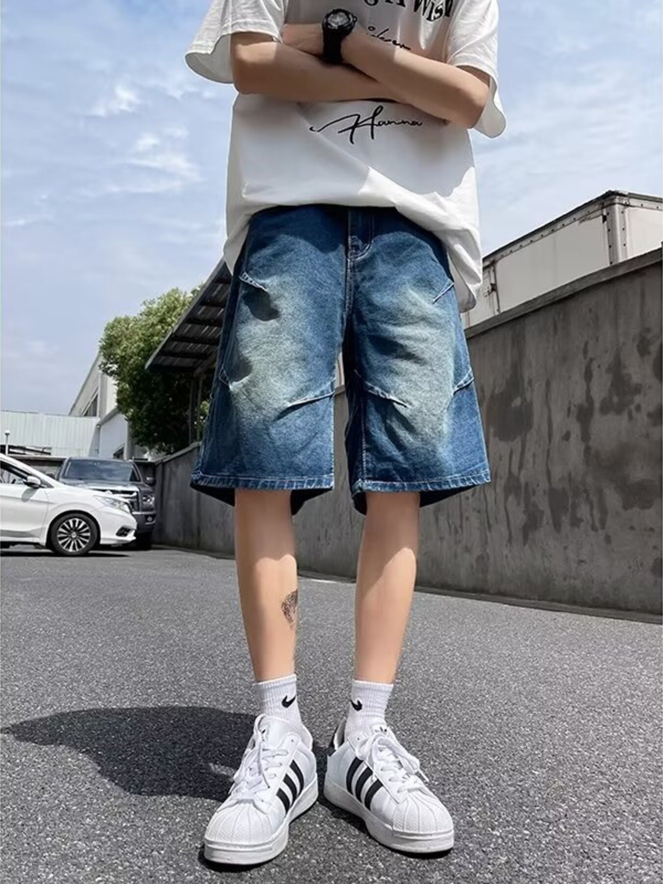 Men's Full Size Vintage Wash Wide-Leg Denim Shorts Plus Size