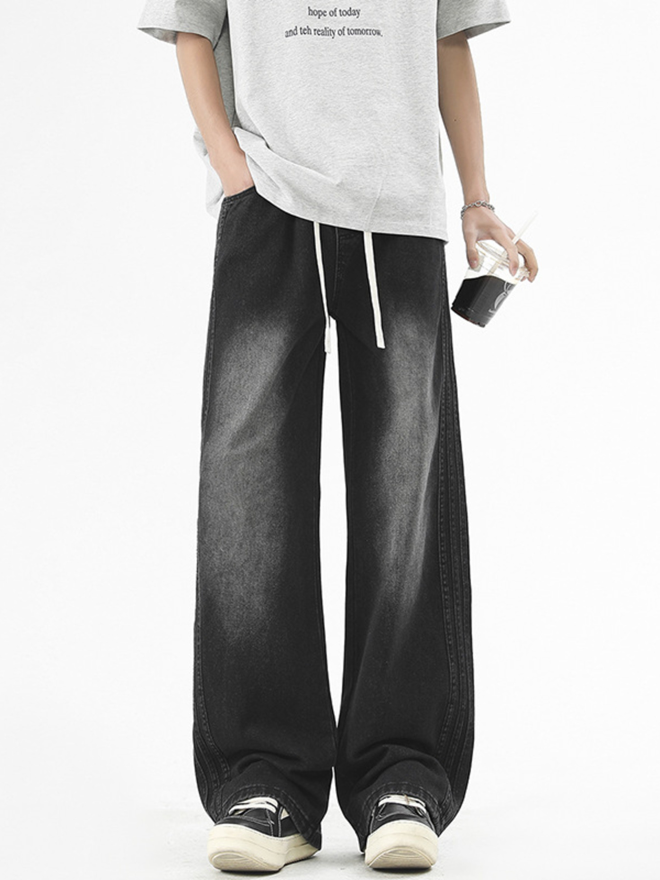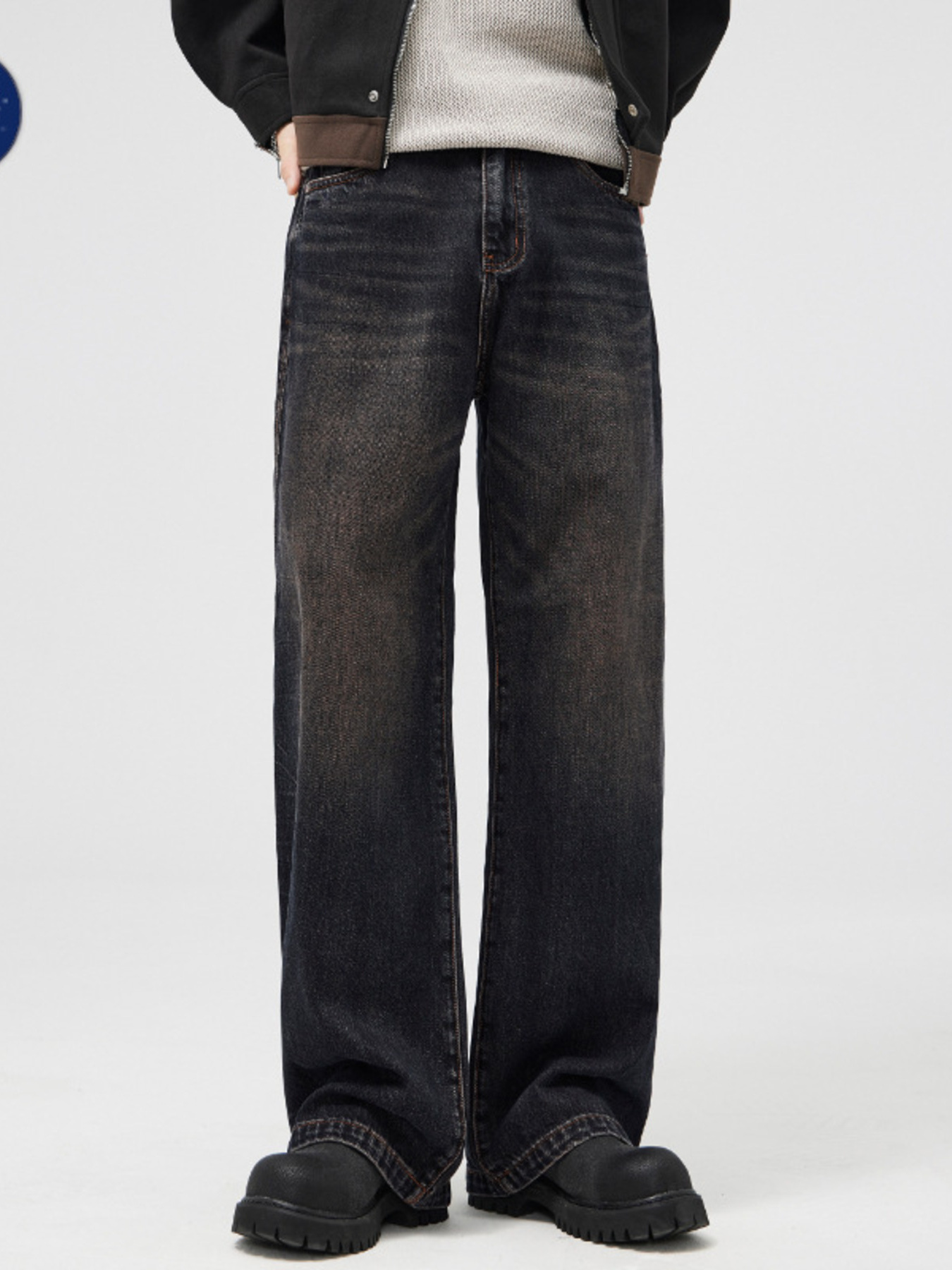Men's Vintage Wash Wide Leg Jeans