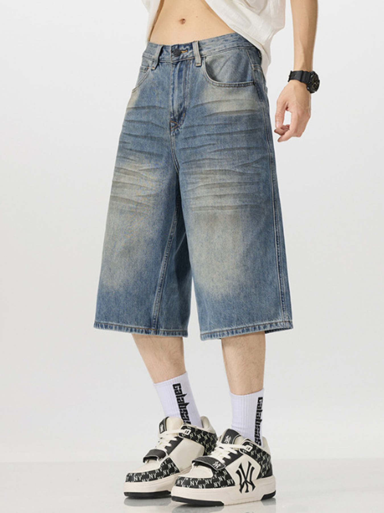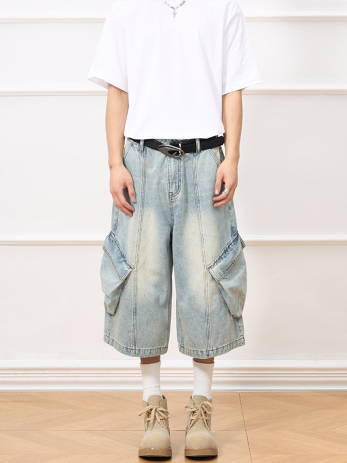 Men's Vintage Wash Wide-Leg Capris Jeans