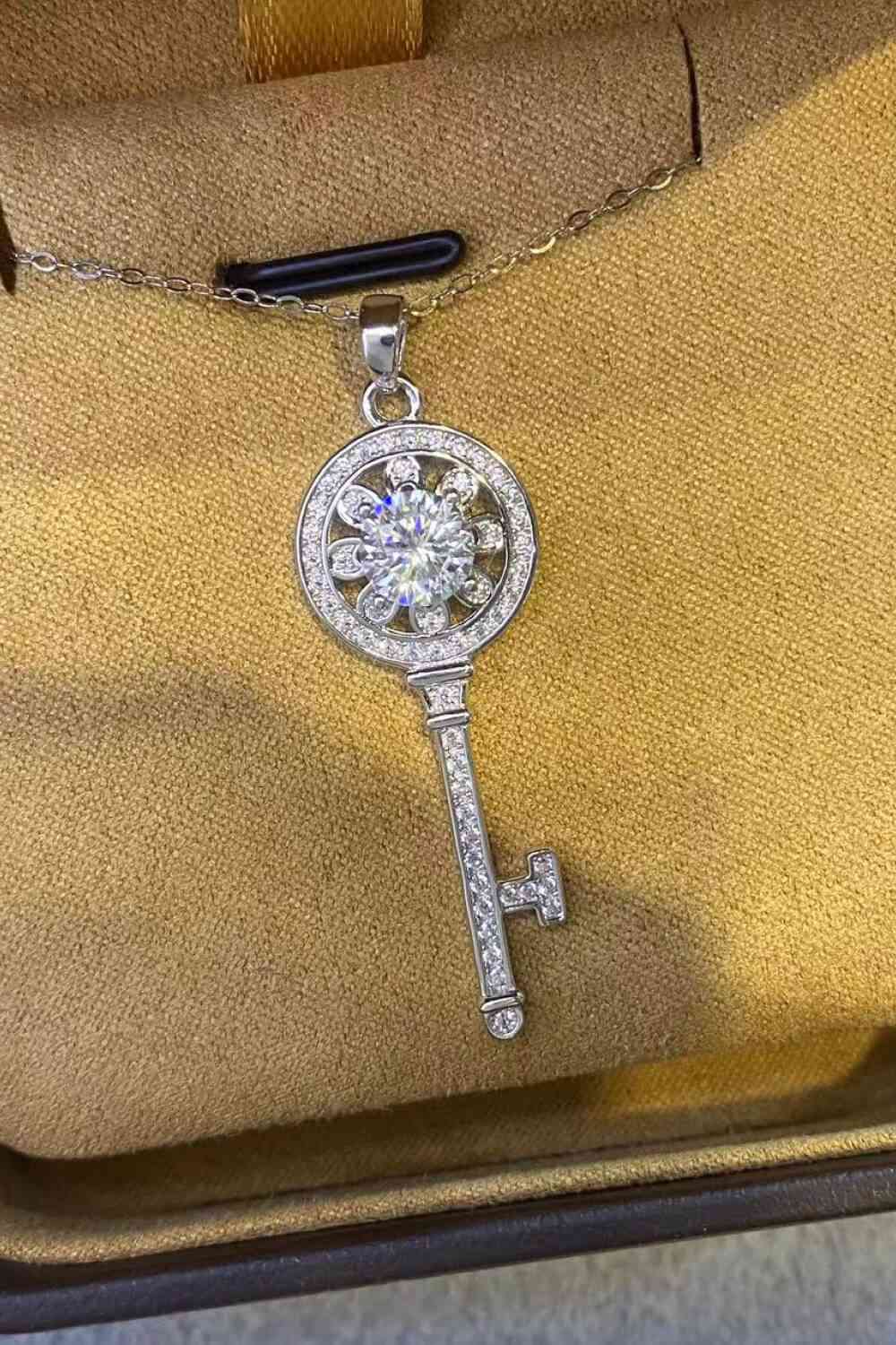 1 Carat Moissanite Platinum-Plated Key Pendant Necklace