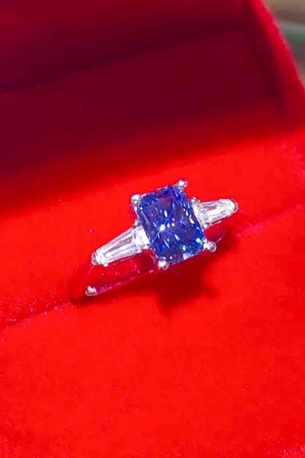 1 Carat Moissanite Platinum-Plated Rectangle Ring in Blue
