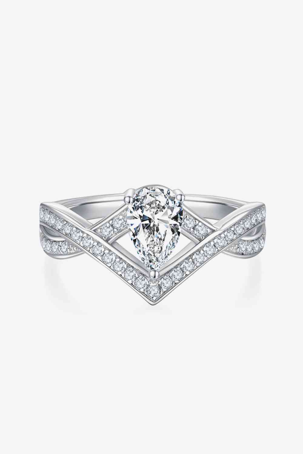 1 Carat Moissanite Teardrop 925 Sterling Silver Ring