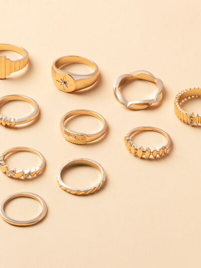 10-Piece 18K Gold-Plated Geometric Ring