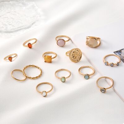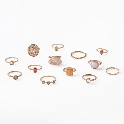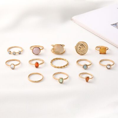 13 Piece 18K Gold-Plated Minimalist Ring Set