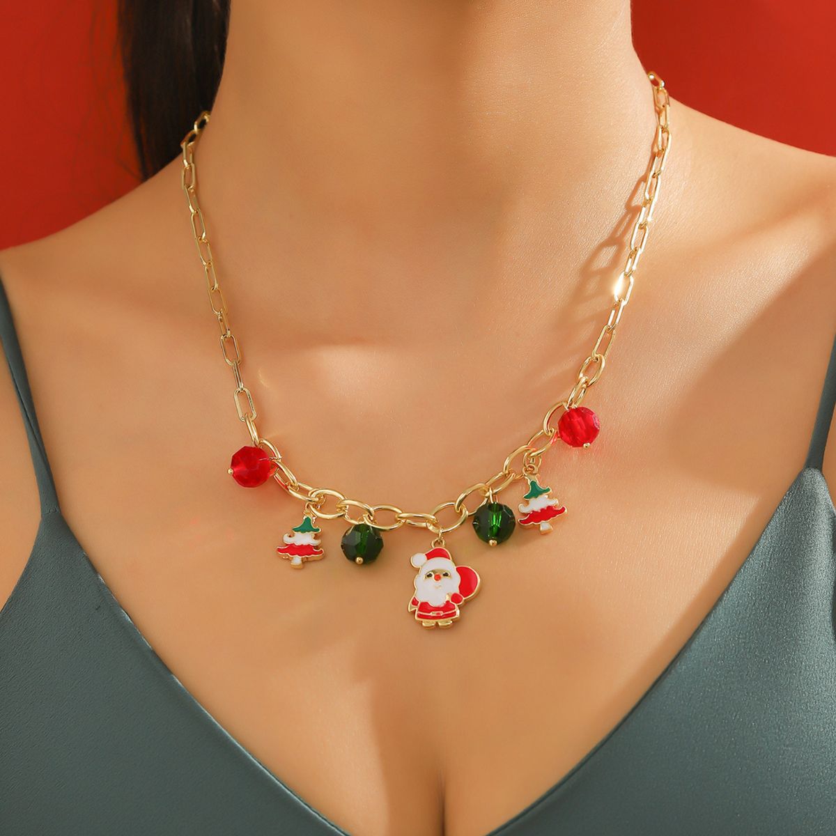 18K Gold-Plated Alloy Christmas Necklace
