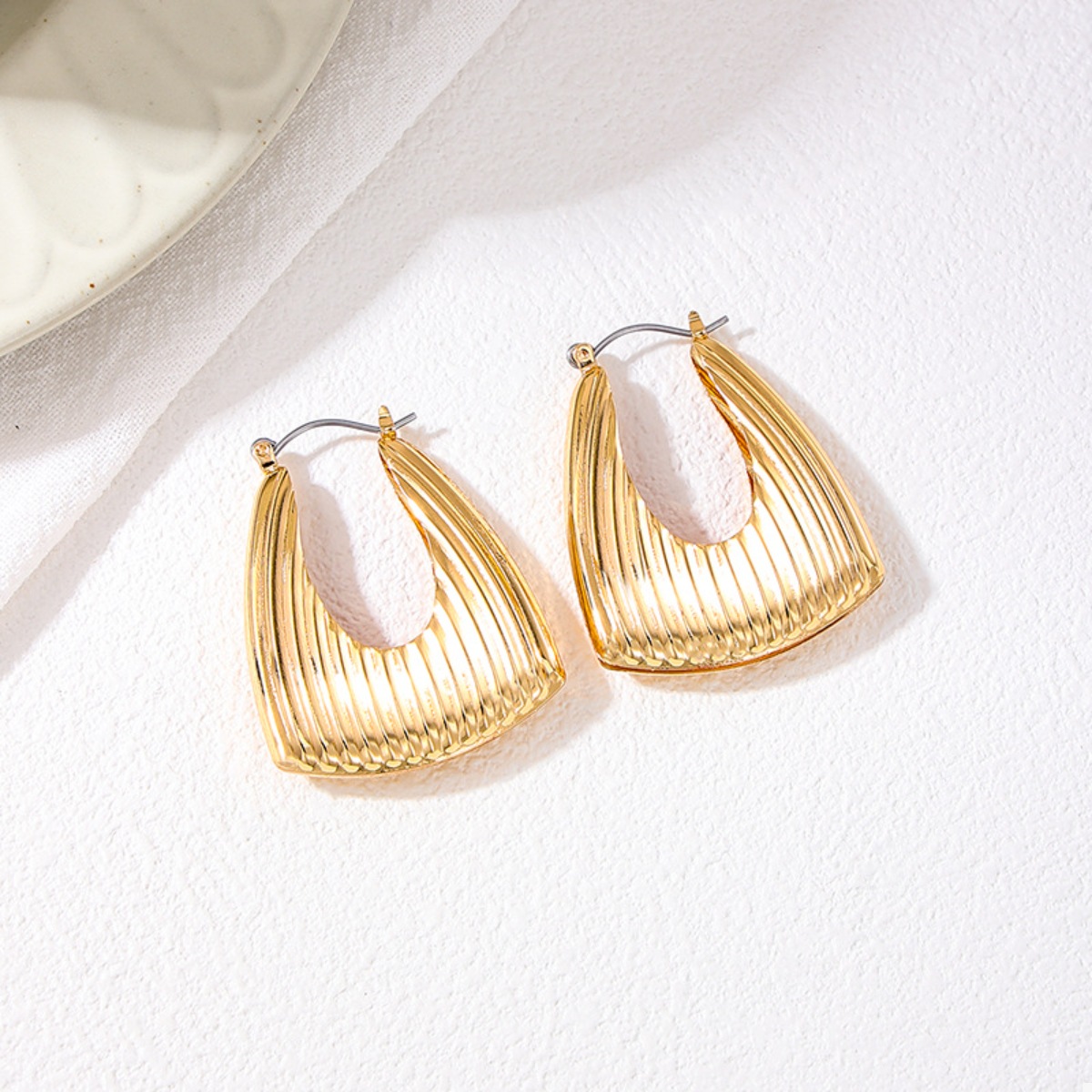 18K Gold-Plated Alloy Ribbed Triangular Hoop Earrings