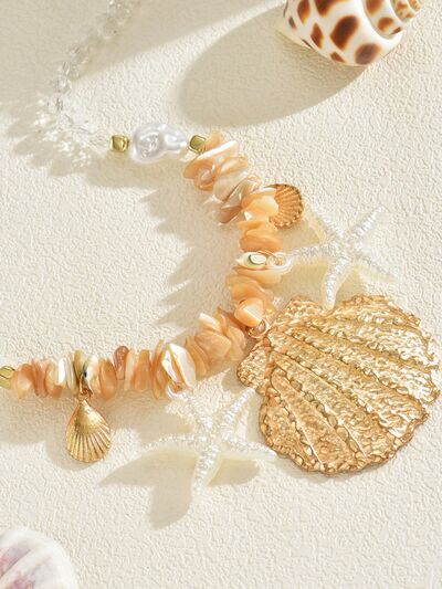 18K Gold-Plated Beach Shell Starfish Pendant Necklace