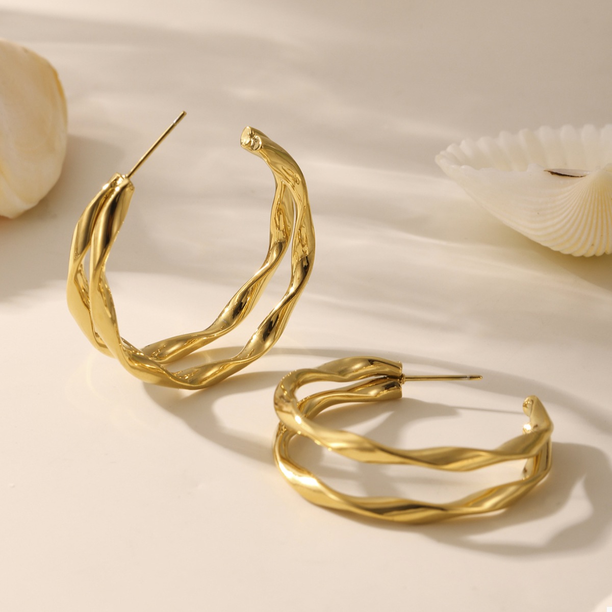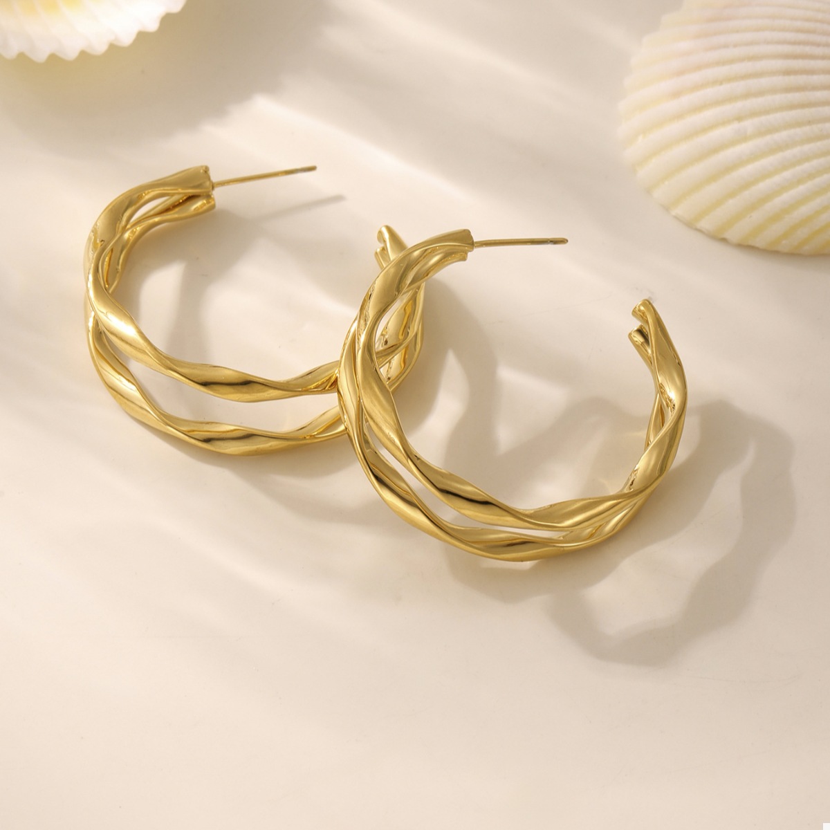 18K Gold-Plated Chunky Twisted Hoop Earrings