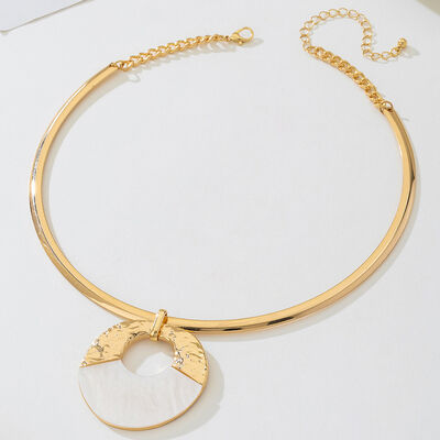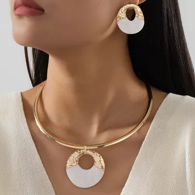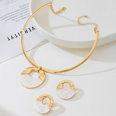 18K Gold-Plated Circle Pendant Necklace and Earrings Jewelry Set