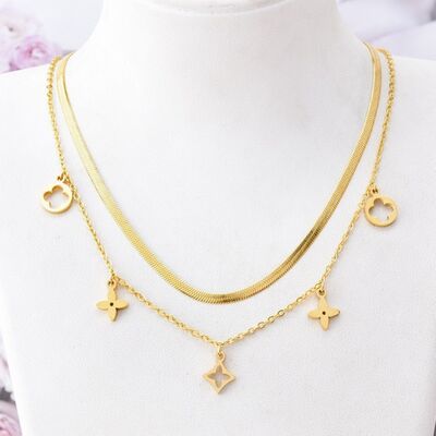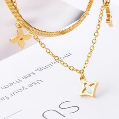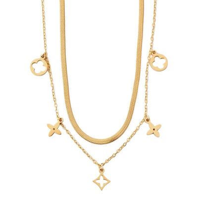 18K Gold-Plated Double Layered Charm Necklace