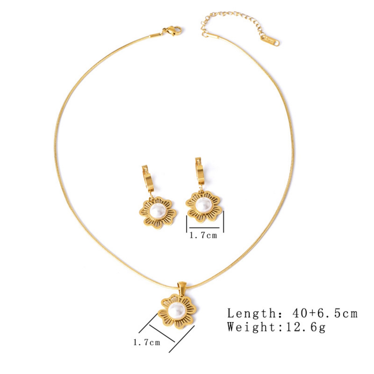 - Material:Synthetic Pearl,18K Gold-Plated,Stainless Steel