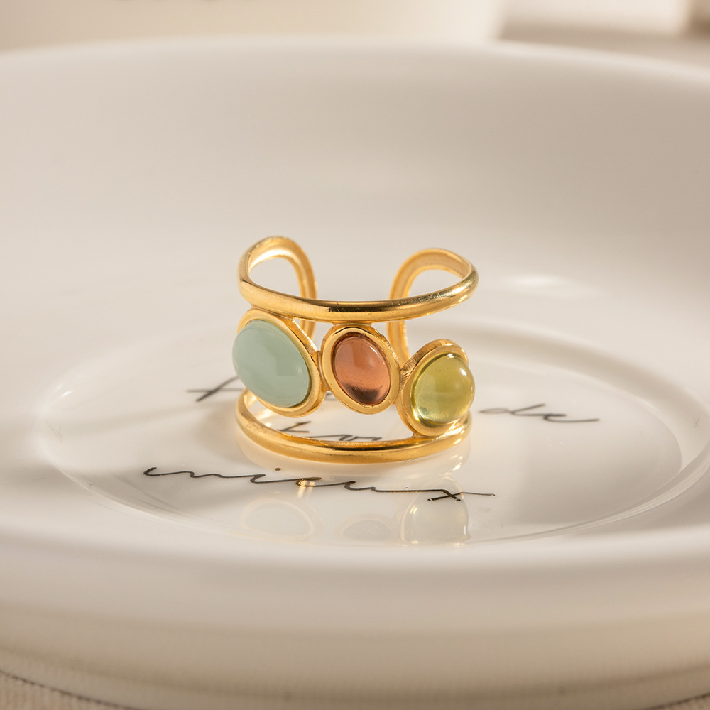 18K Gold-Plated Gemstone Open Cuff Ring