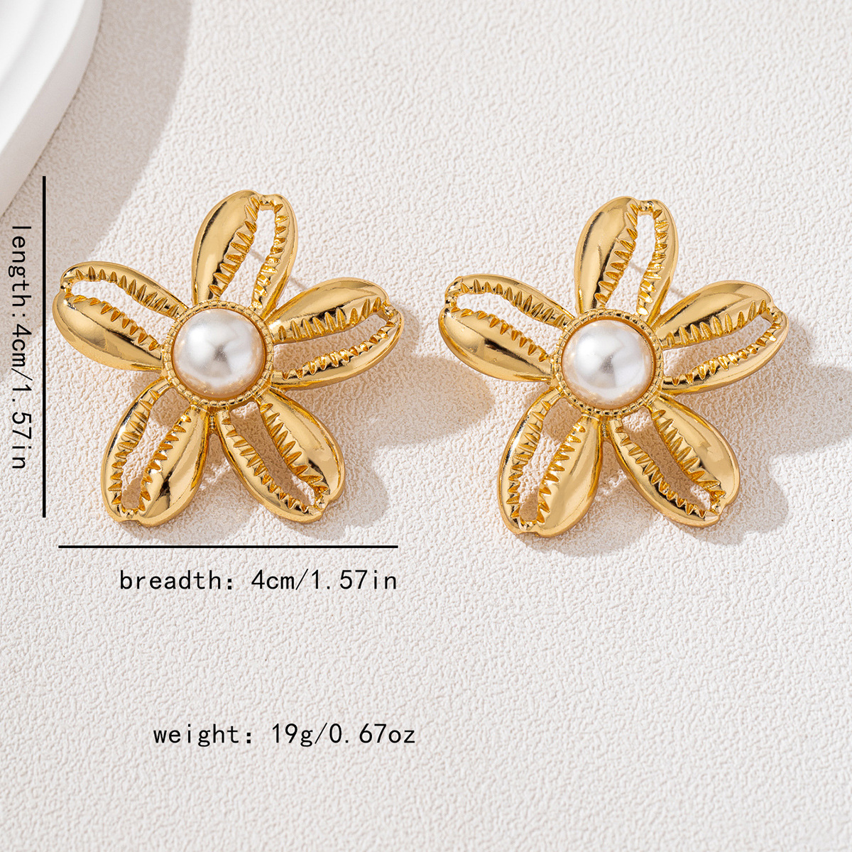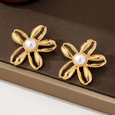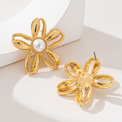 18K Gold-Plated Gold Flower Synthetic Pearl Stud Earrings