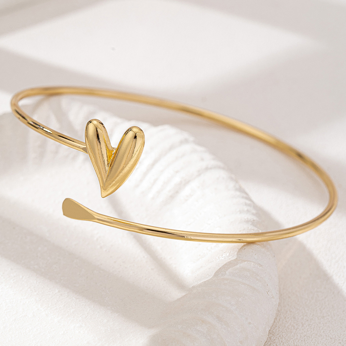 18K Gold-Plated Heart Adjustable Open Bracelet