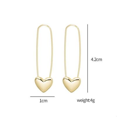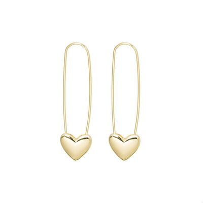 18K Gold-Plated Heart Charm Safety Pin Earrings