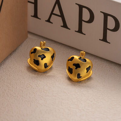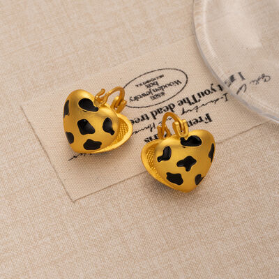18K Gold-Plated Heart Leopard Print Statement Earrings