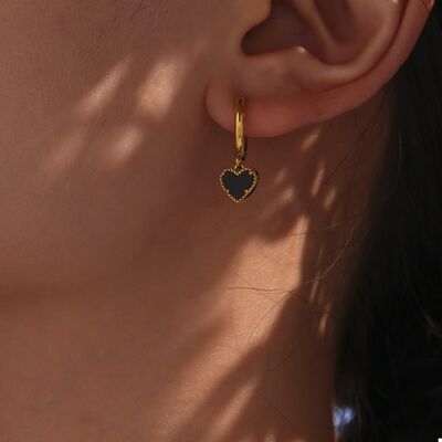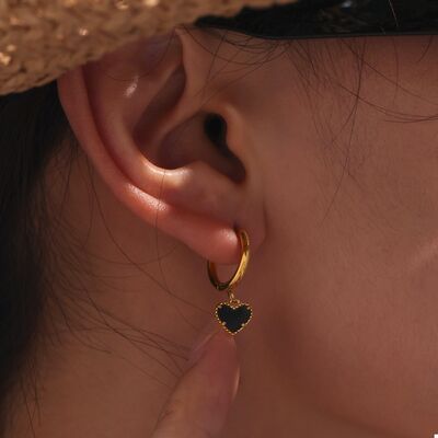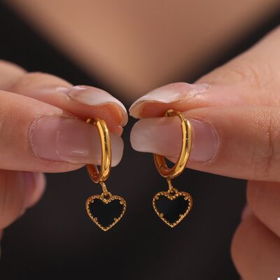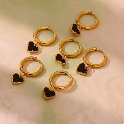 18K Gold-Plated Hoop Earrings with Heart Pendant