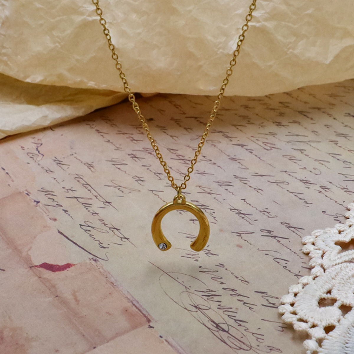18K Gold-Plated Horseshoe Pendant Necklace