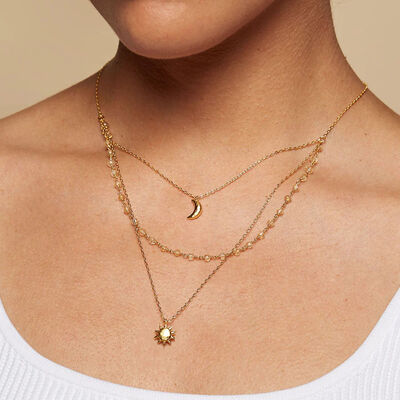 18K Gold-Plated Layered Moon Sun Pendant Necklace