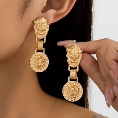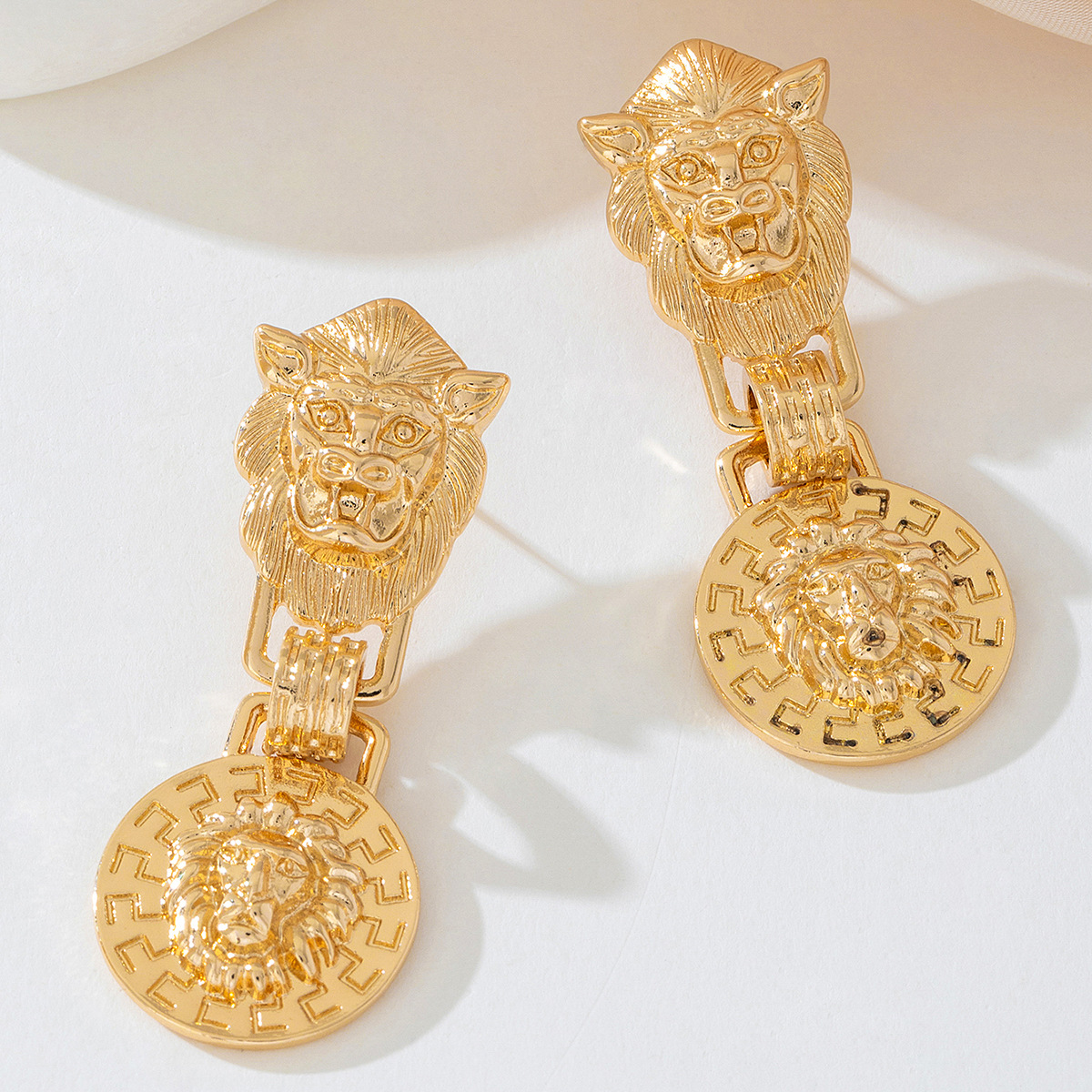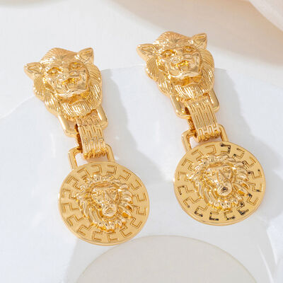 18K Gold-Plated Lion Head Medallion Drop Earrings