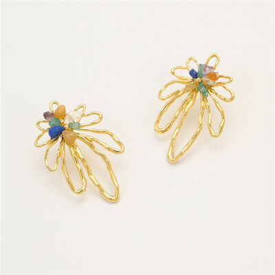18K Gold-Plated Natural Stone Flower Earrings