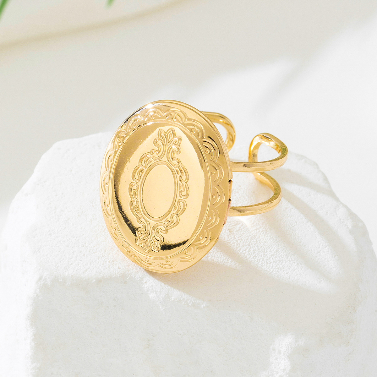 18K Gold-Plated Open Engraved Ring