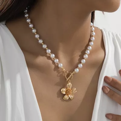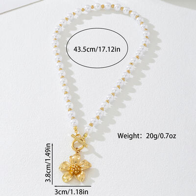 18K Gold-Plated Pearl Flower Pendant Necklace
