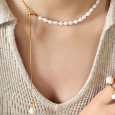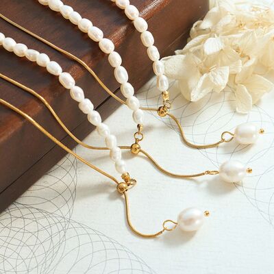 - Material: Freshwater pearl, 18K gold-plated, Titanium steel